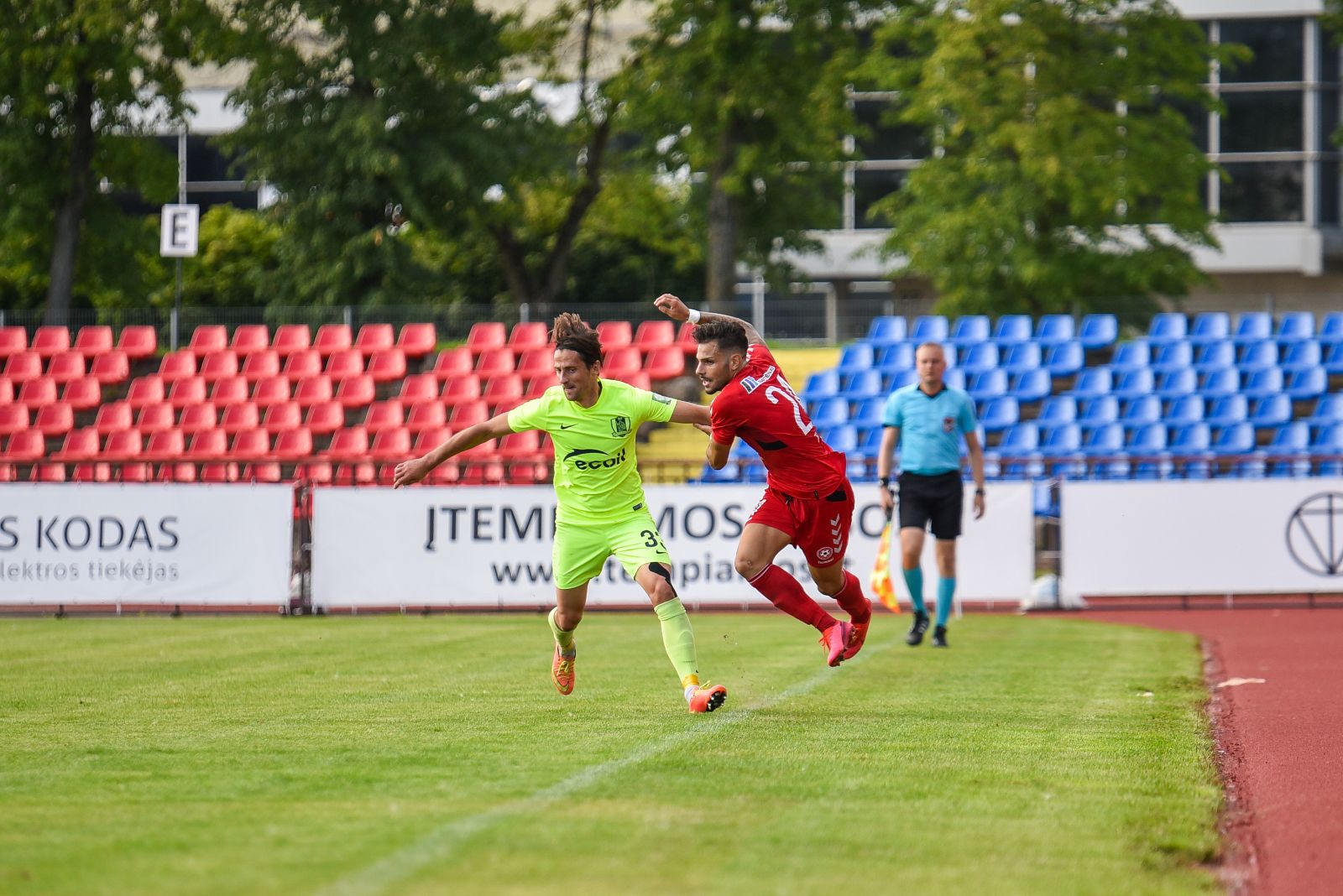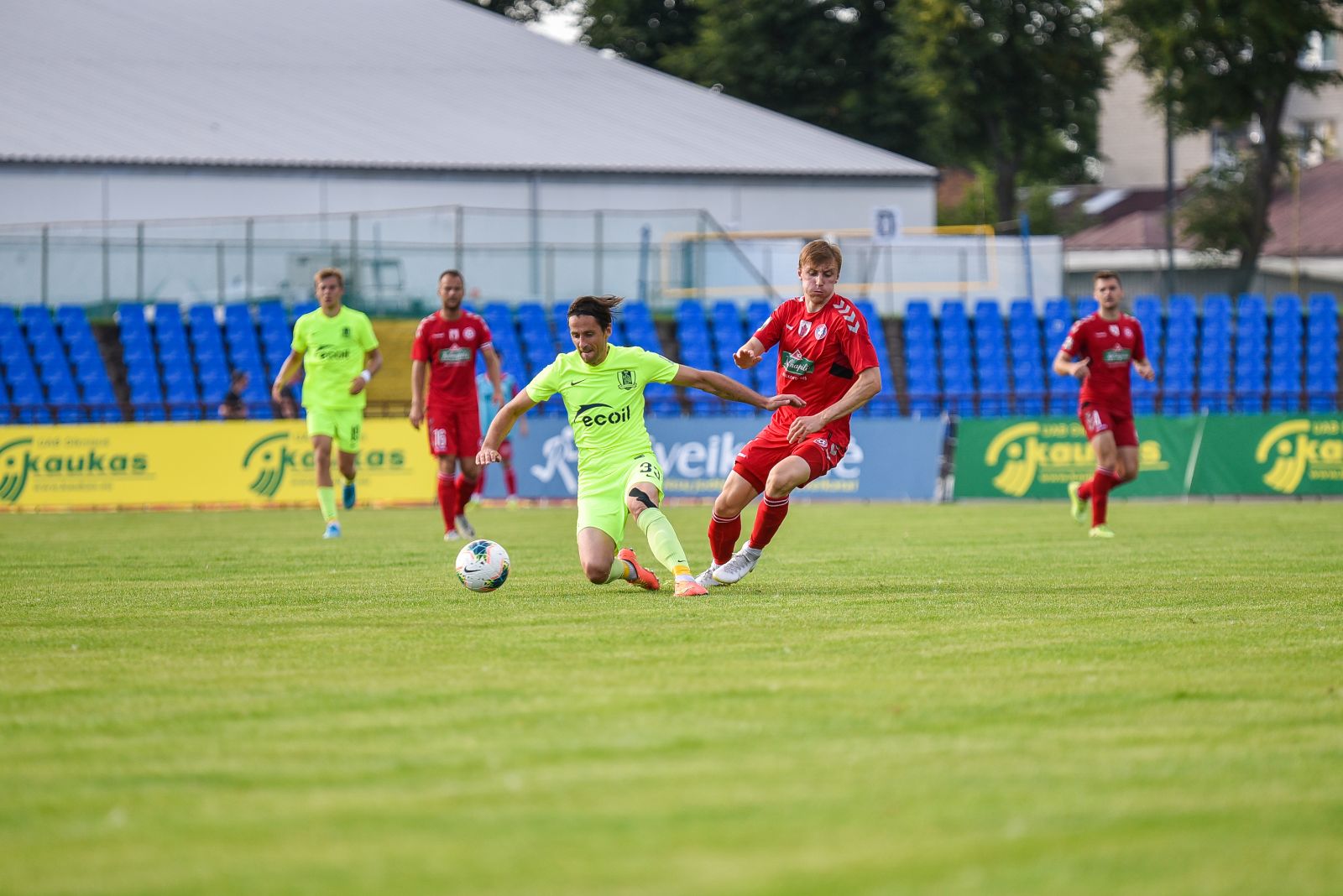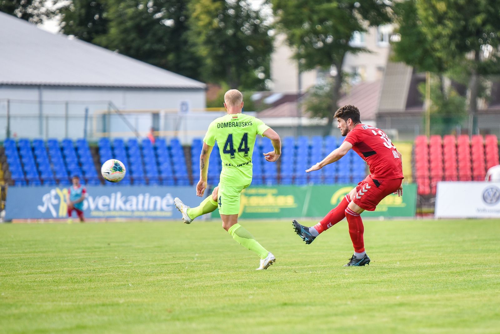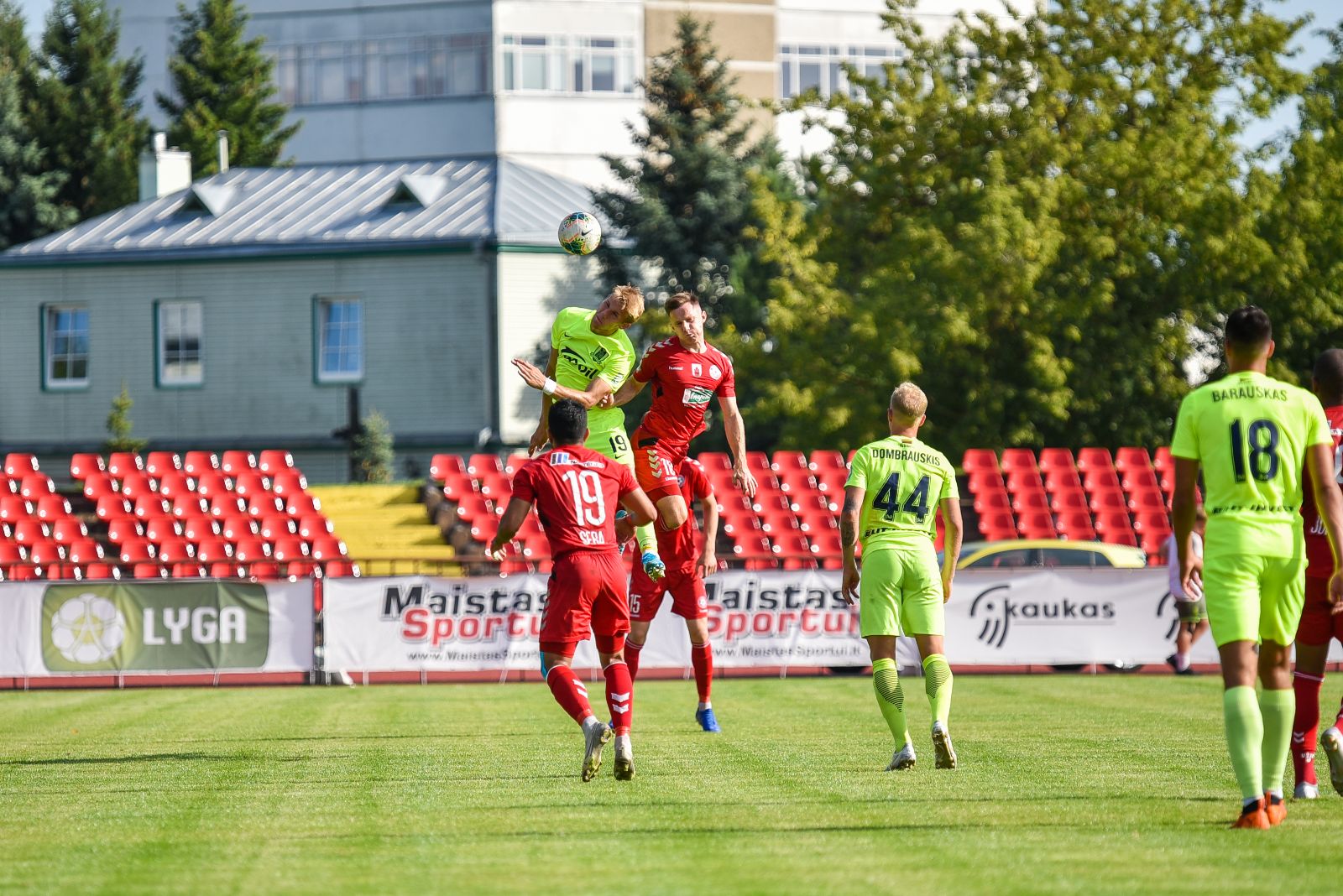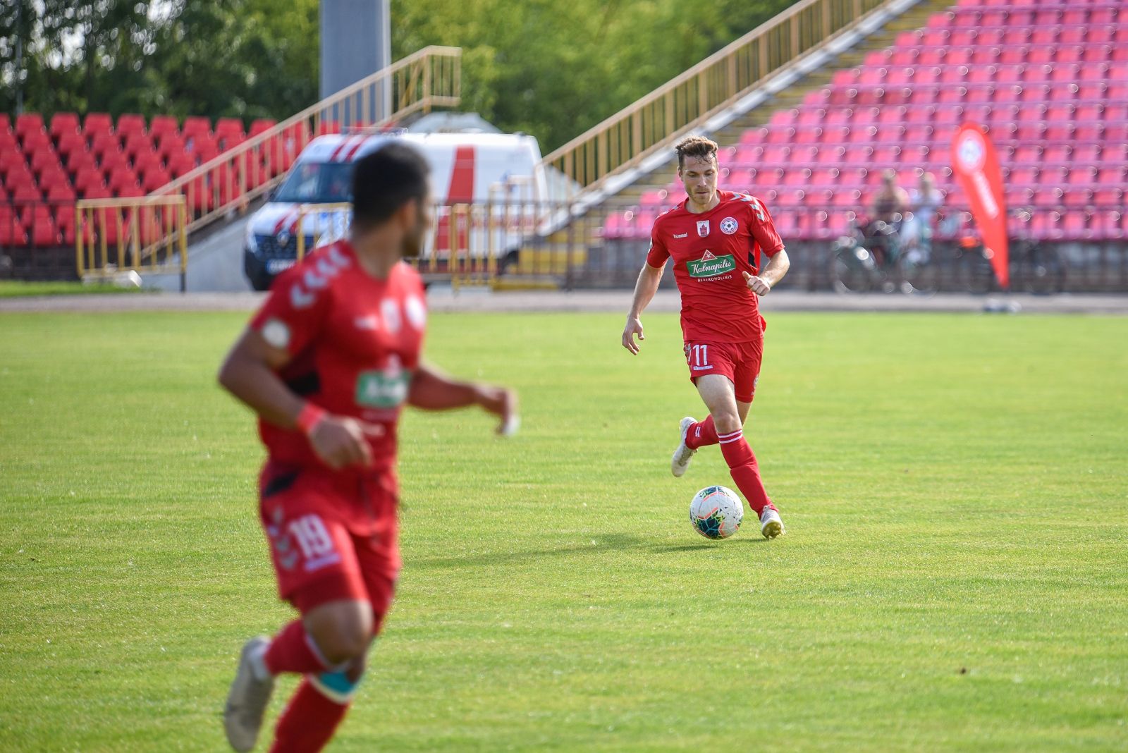 35-ąją mačo minutę panevėžiečiai sukūrė puikią progą prie vilniečių vartų. Jorge Eliasas galva smūgiavo į viršutinį svečių ekipos vartų kampą, bet patikimai sužaidęs „Riterių“ vartininkas Tadas Simaitis šuolyje nukreipė kamuolį į kampinį.