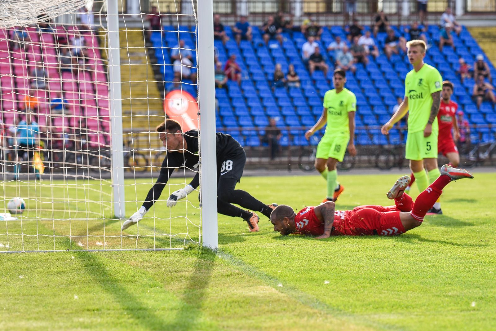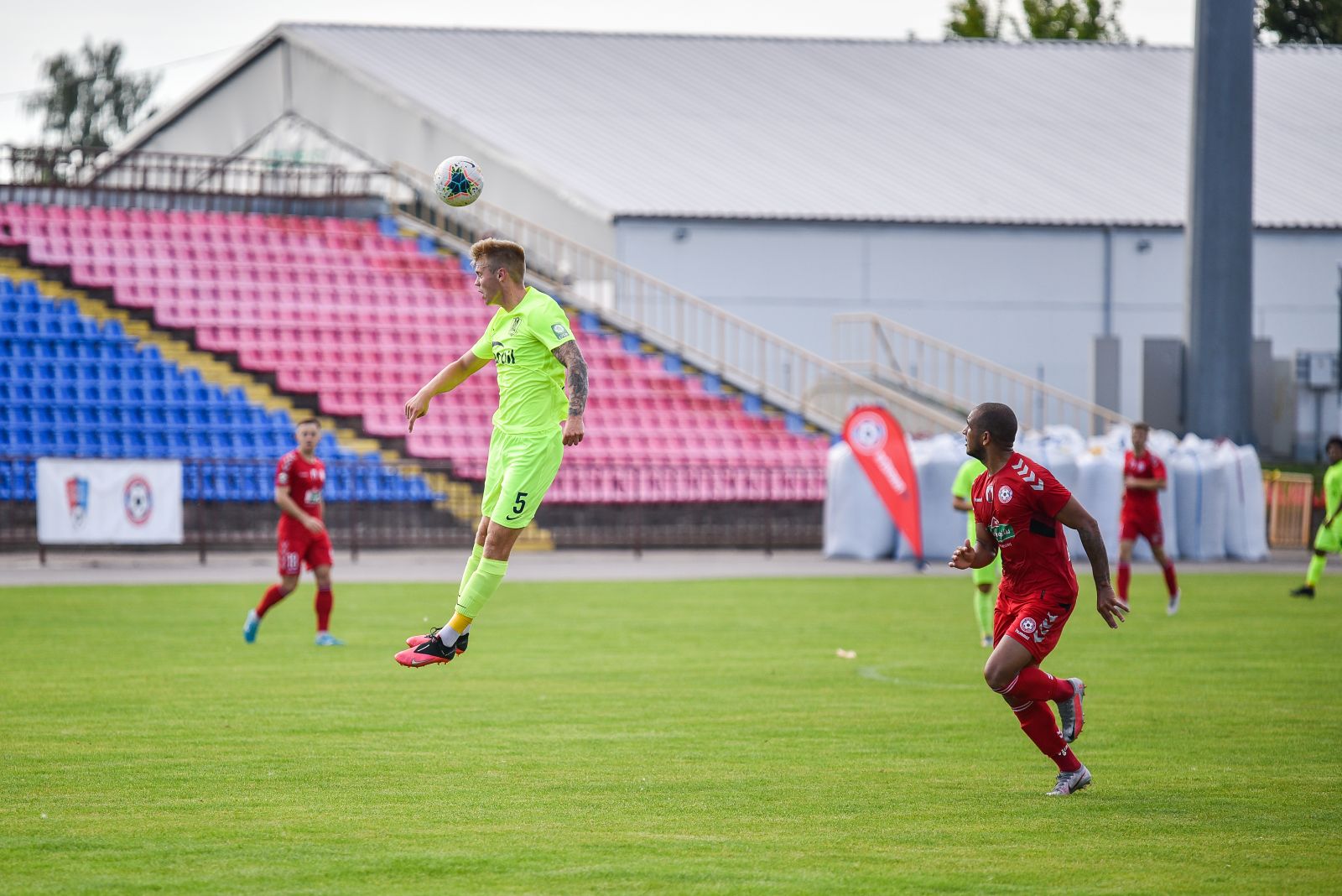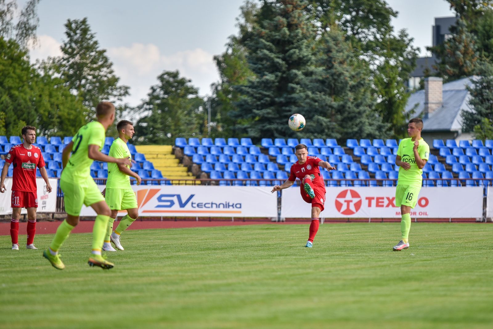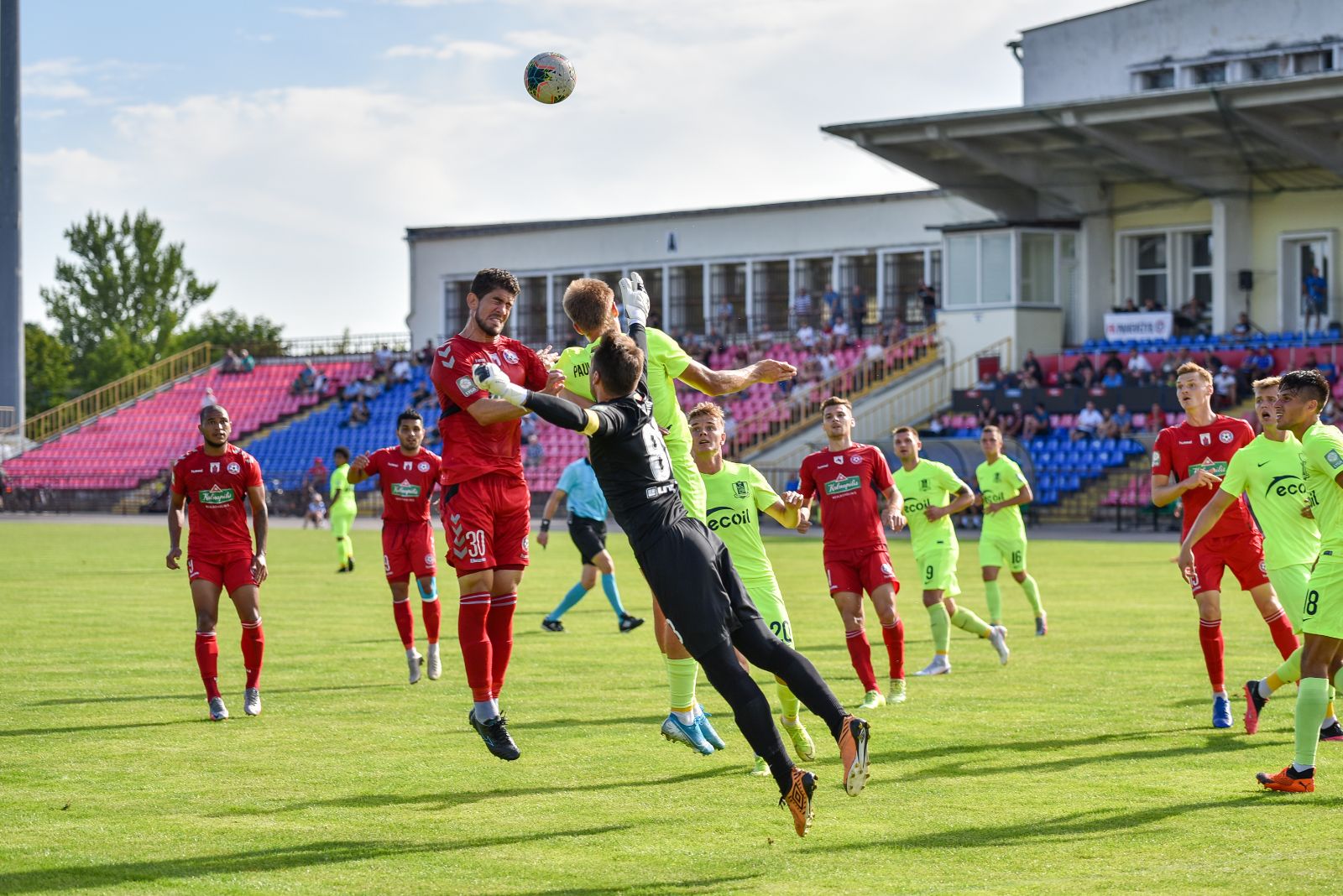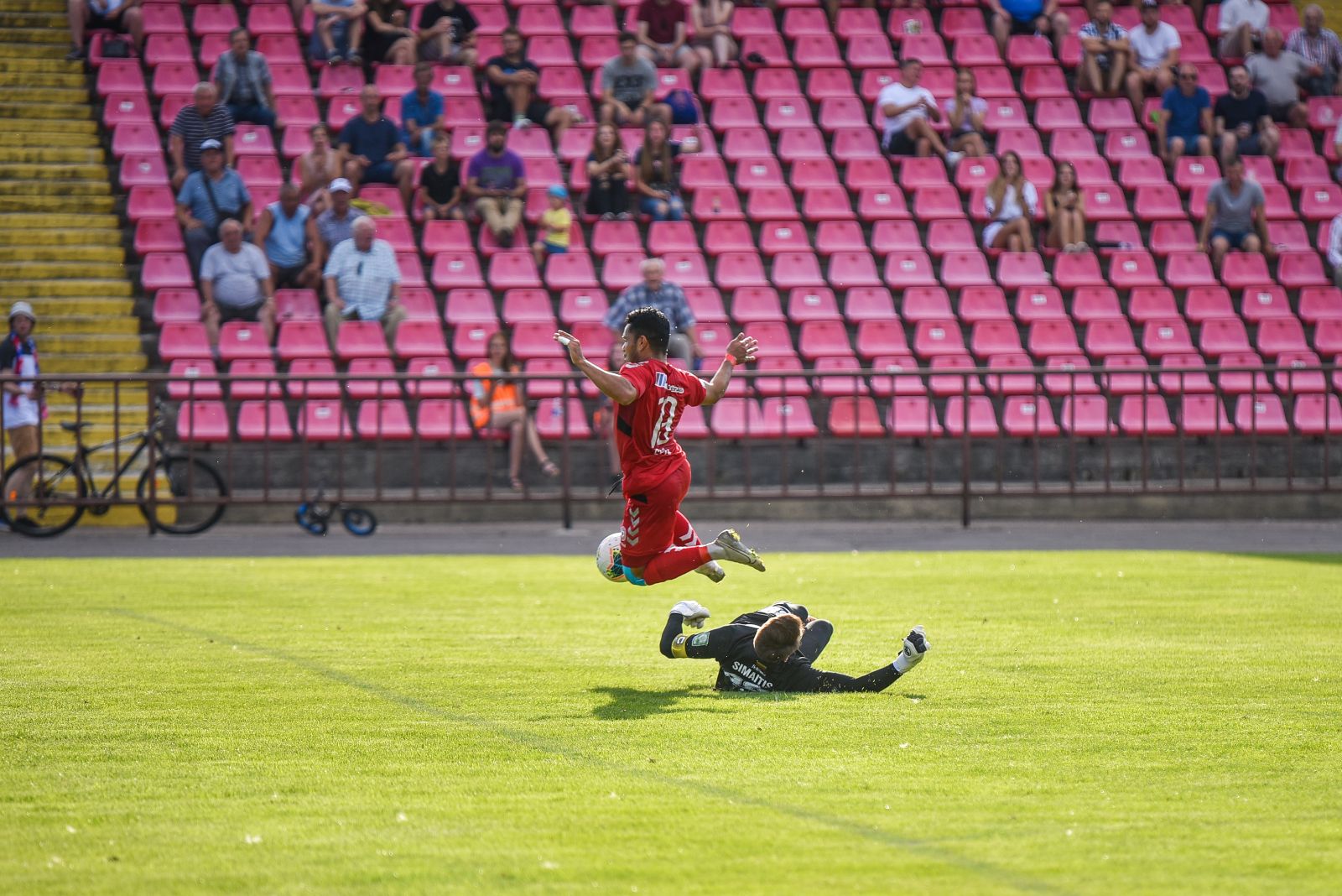 35-ąją mačo minutę panevėžiečiai sukūrė puikią progą prie vilniečių vartų. Jorge Eliasas galva smūgiavo į viršutinį svečių ekipos vartų kampą, bet patikimai sužaidęs „Riterių“ vartininkas Tadas Simaitis šuolyje nukreipė kamuolį į kampinį.
