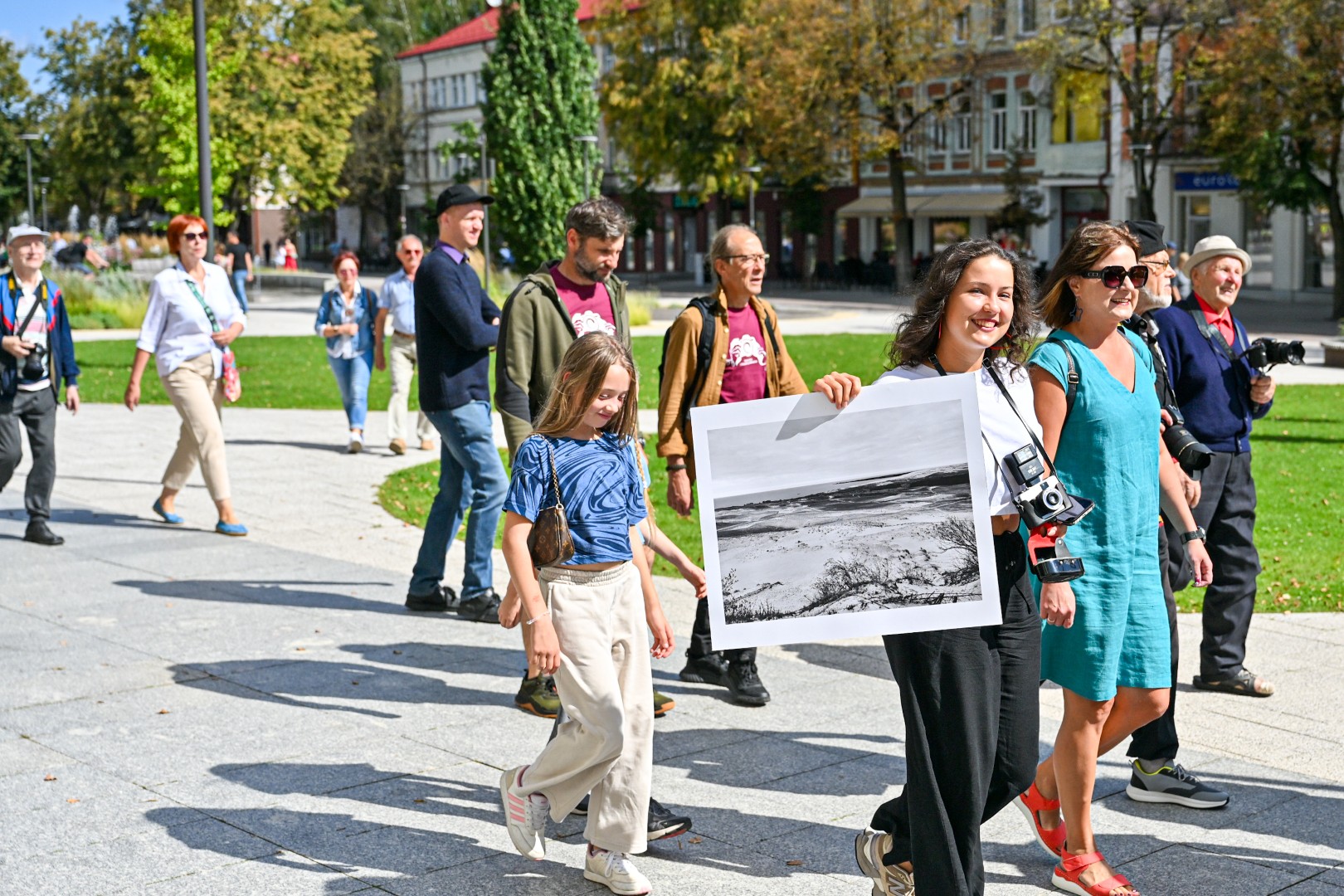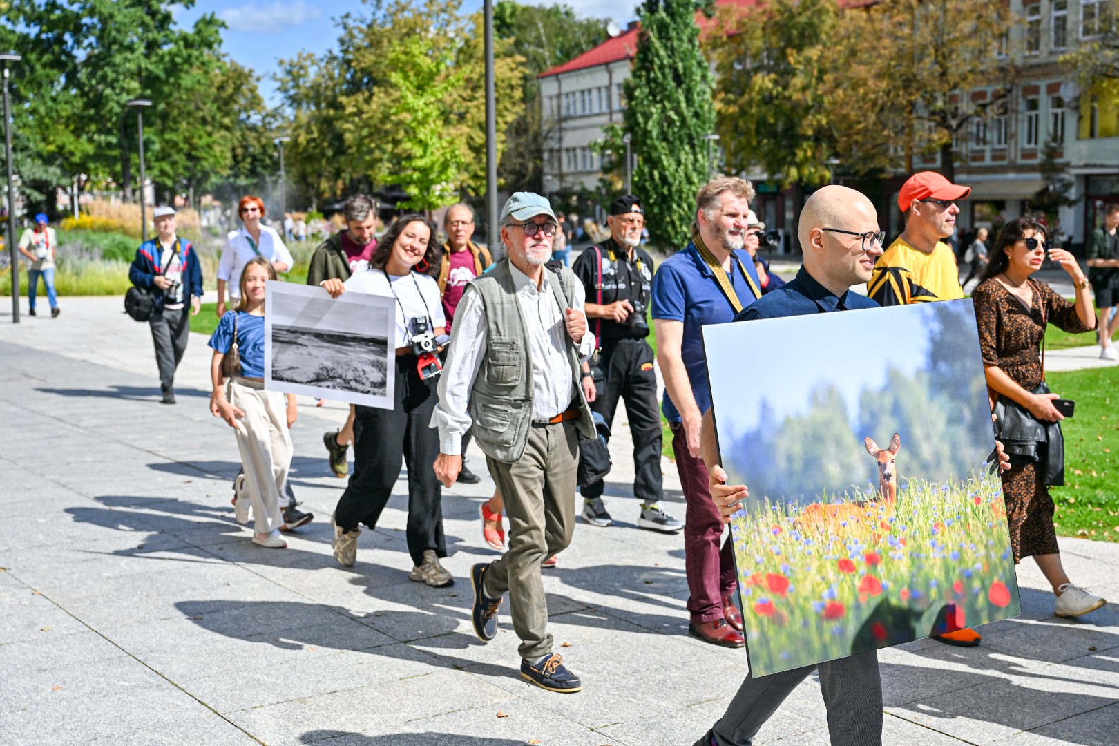 Minint Pasaulinę fotografijos dieną, rugpjūčio 19-ąją Panevėžio centras virto gyva meno scena – aplink Laisvės aikštę nuo viešbučio, pro miesto Savivaldybę iki Juozo Miltinio dramos teatro nusidriekė spalvinga fotografų eisena.