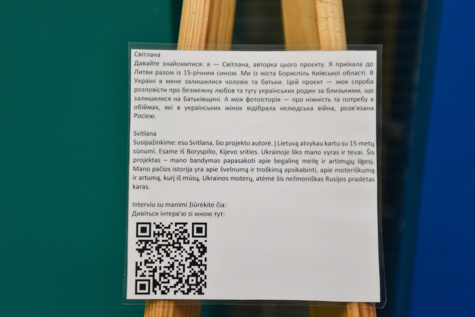 Parodos autorė Svitlana Diduch-Romanenko (1983) gimė ir iki karo su šeima gyveno Boryspilyje, Kijevo srityje Ukrainoje, o šiuo metu apsistojusi Panevėžyje.