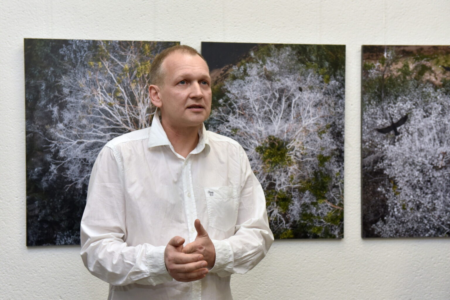 Pirmoji šįmet Fotografijos galerijoje surengta paroda – fotomenininko Andriaus Repšio „Balti medžiai“ susidomėjusiųjų gausa kone sprogdino pačią galeriją.