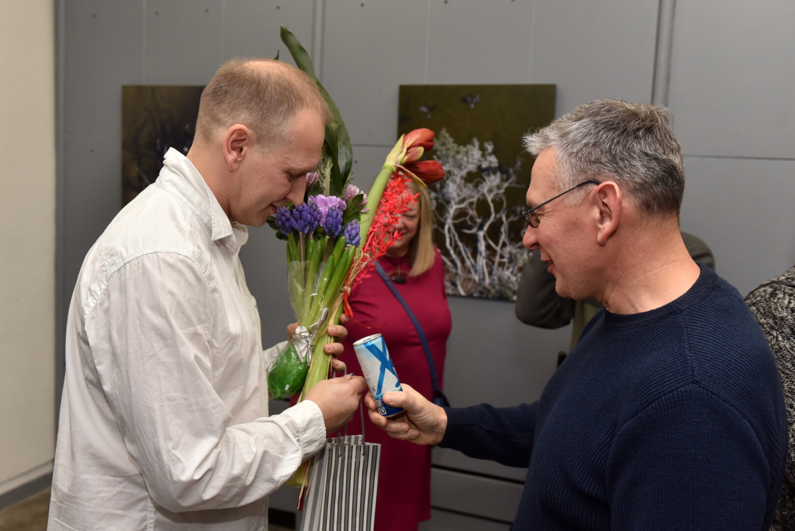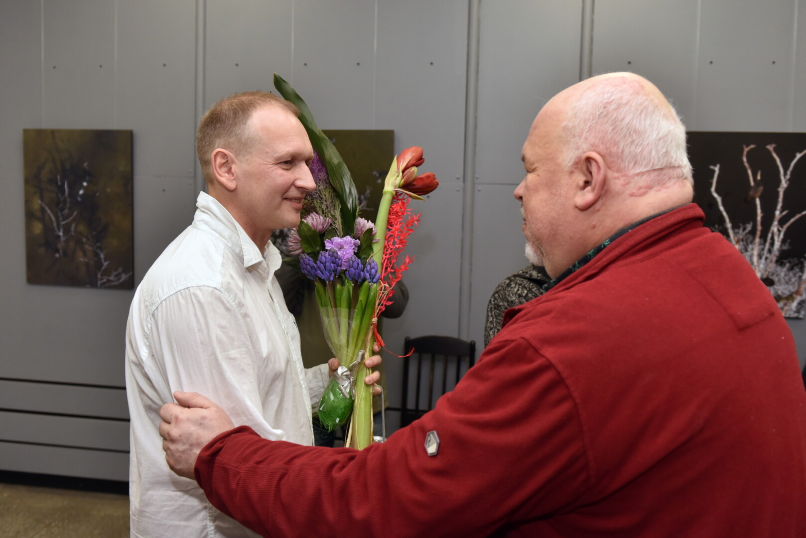 Sveikinantieji A. Repšį su paroda drauge sakė ir savotiškas atsisveikinimo kalbas. A. Repšys savo verslą kelia į Vilnių, kur daugiau jo klientų menininkų.