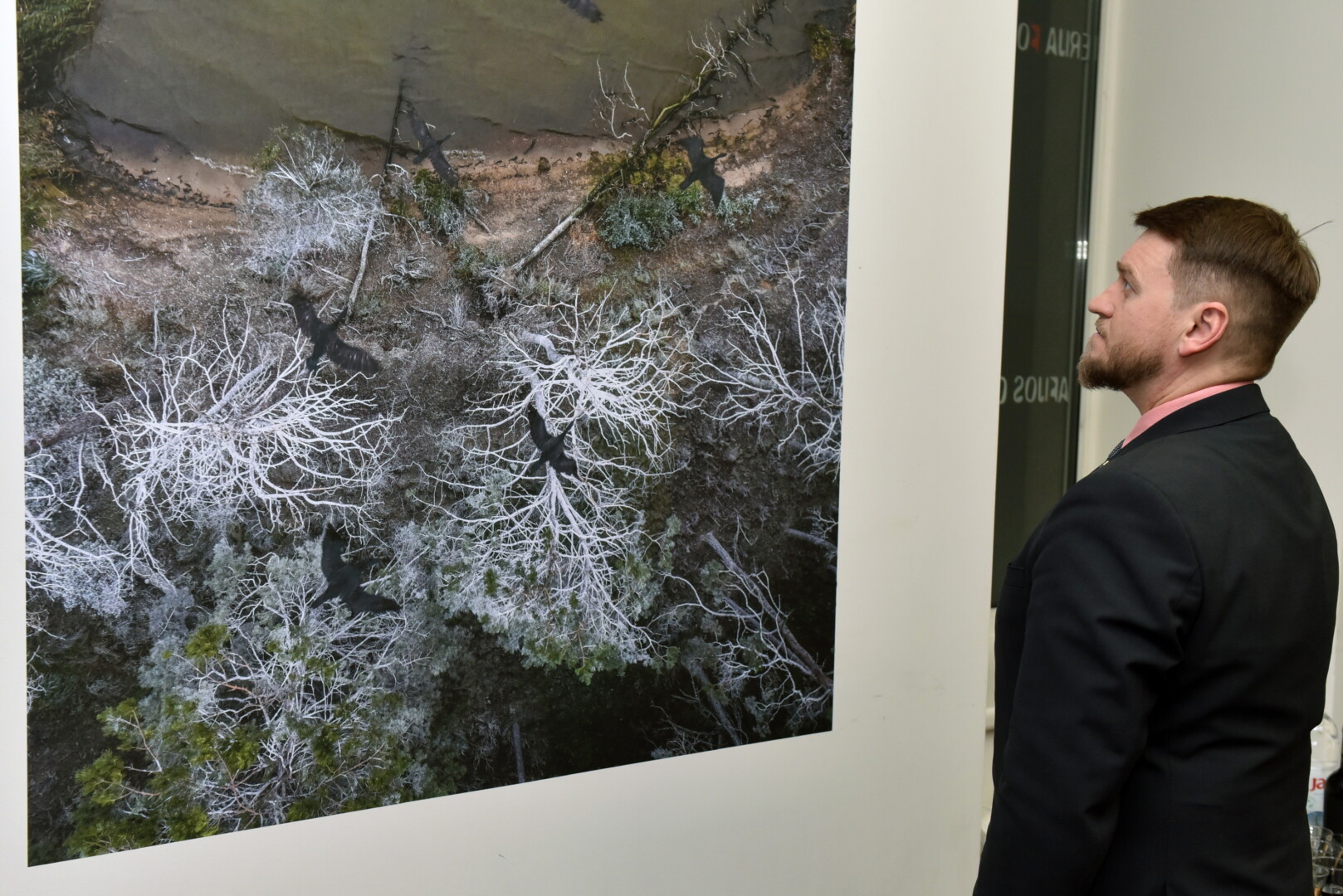 Tačiau dronu darytomis fotografijomis garsėjančiam A. Repšiui toks iššūkis nebuvo neįveikiamas. Ant baltų medžių, virš jų, šalia jų matyti su baltuma itin kontrastuojantys, šiek tiek mistiški, o gal net savotišką baimę keliantys kormoranai.