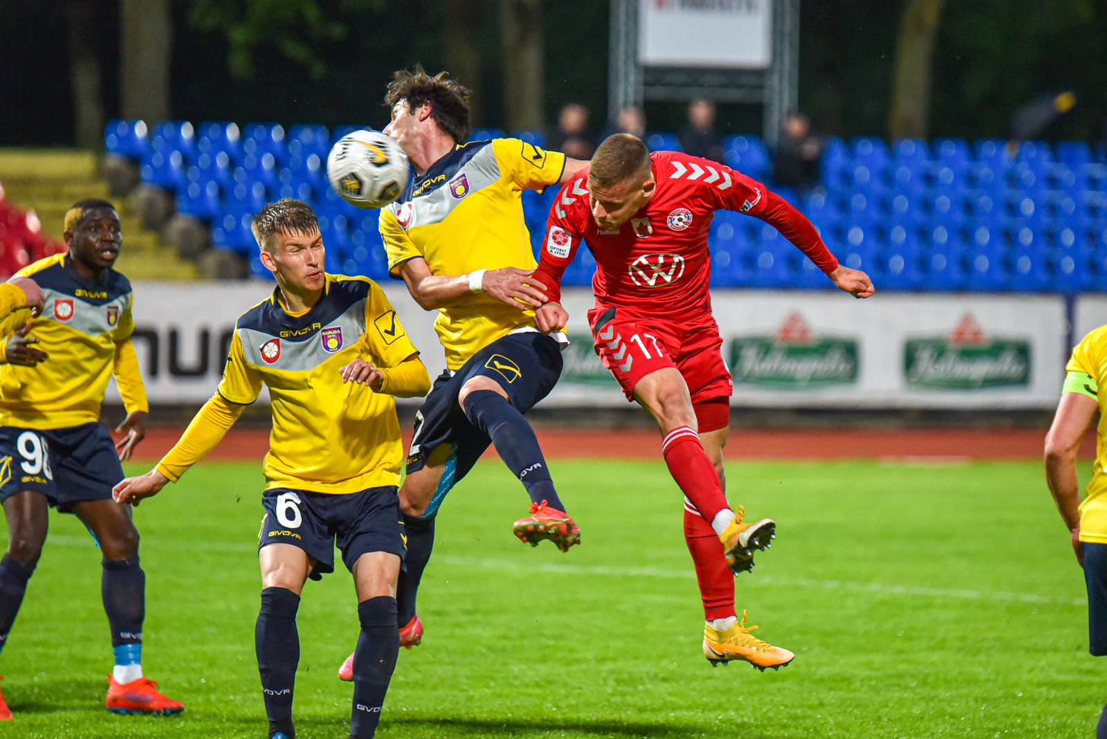 Panevėžiečiai svečių vartus apgulė nuo pat susitikimo pradžios. Jau 4-ąją minutę meistrišku smūgiu iš baudos aikštelės kampo pasižymėjo Jeffrey Sarpongas – 1:0.
