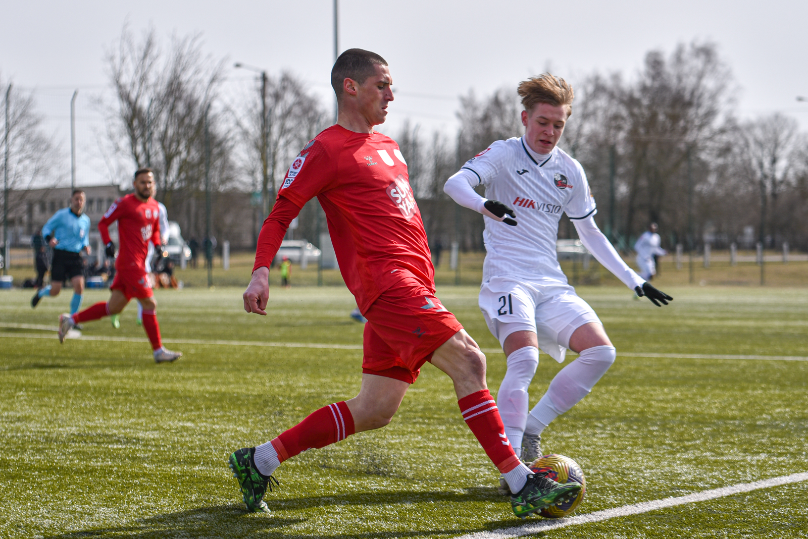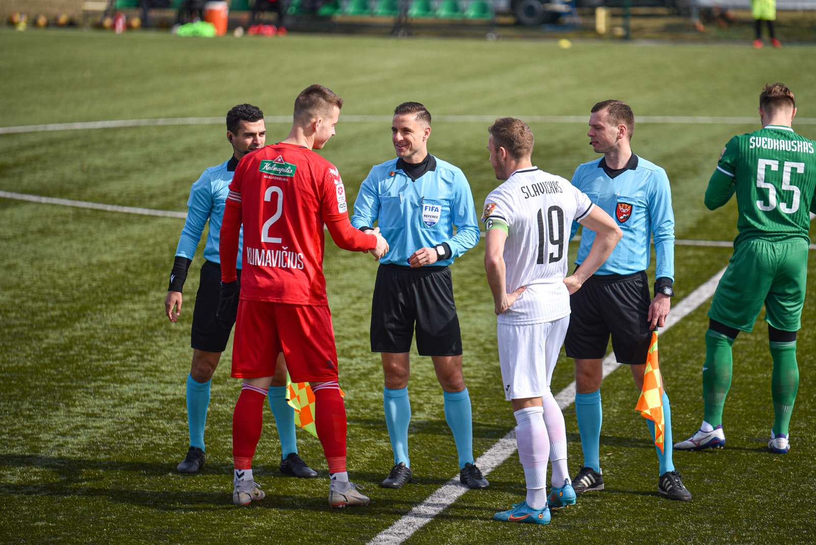 10-ąją susitikimo minutę po pavojingo Roko Stanulevičiaus smūgio iš 20 metrų nuotolio šalies vicečempionus nuo įvarčio išgelbėjo „Sūduvos“ vartininkas Tomas Švedkauskas. Po kelių akimirkų Ariagneris Smithas dar sykį patikrino T. Švedkausko budrumą.