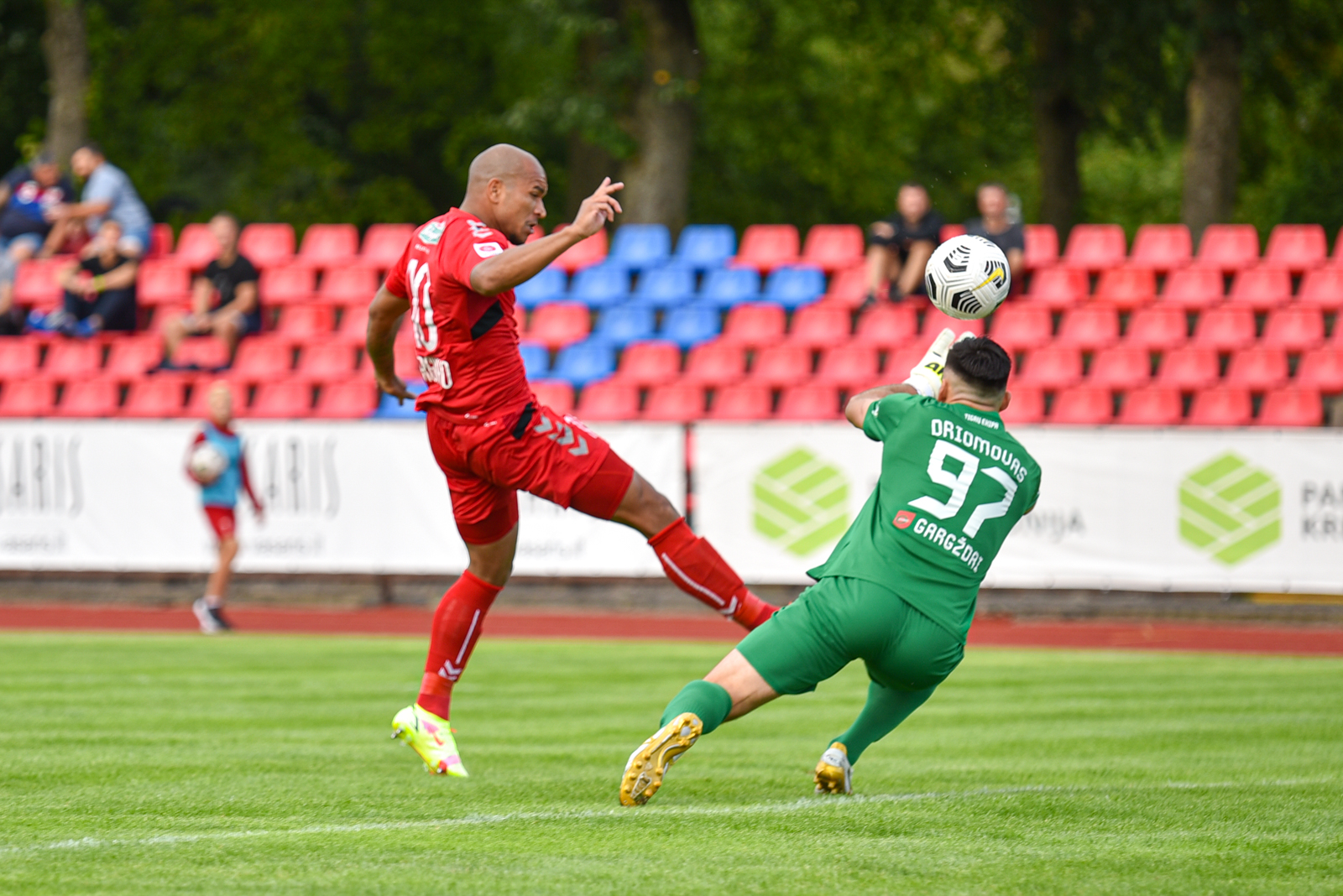 Itin pastebimas atakos smaigalyje buvęs J. Elias 28-ąją mačo minutę tolimu smūgiu patikrino I. Driomovo budrumą, kuris sugebėjo krisdamas nukreipti kamuolį už galinės linijos.