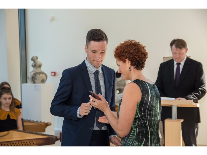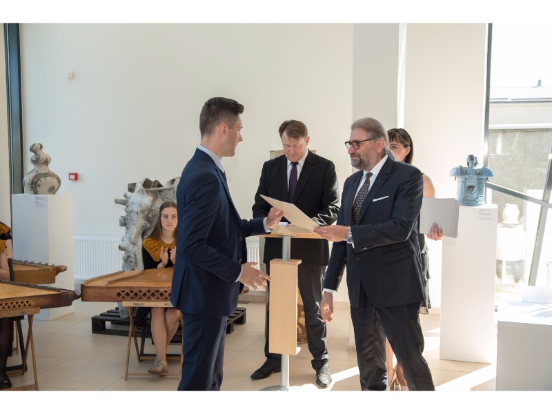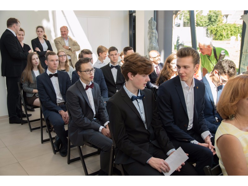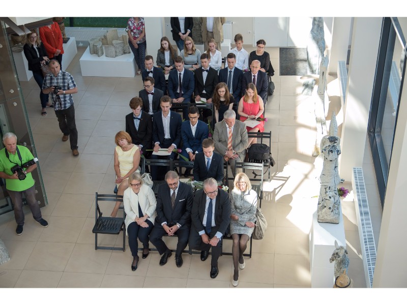Šventę paįvairino stiklo menininko Remigijaus Kriuko instaliacijos „Riedantys mėnesienoje“ pristatymas. Patiems gabiausiems abiturientams buvo patikėta perkirpti raudoną parodos atidarymo juostelę.