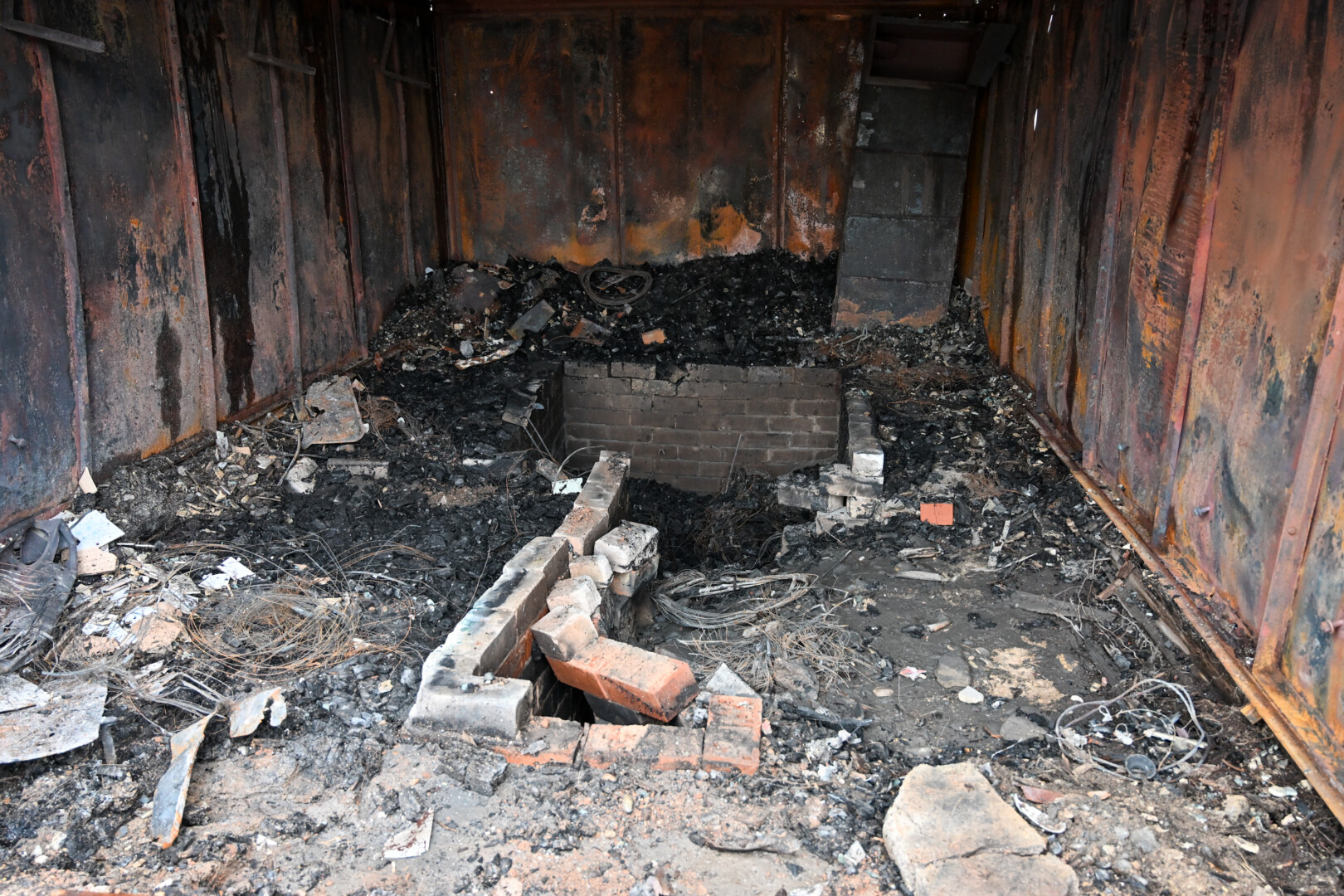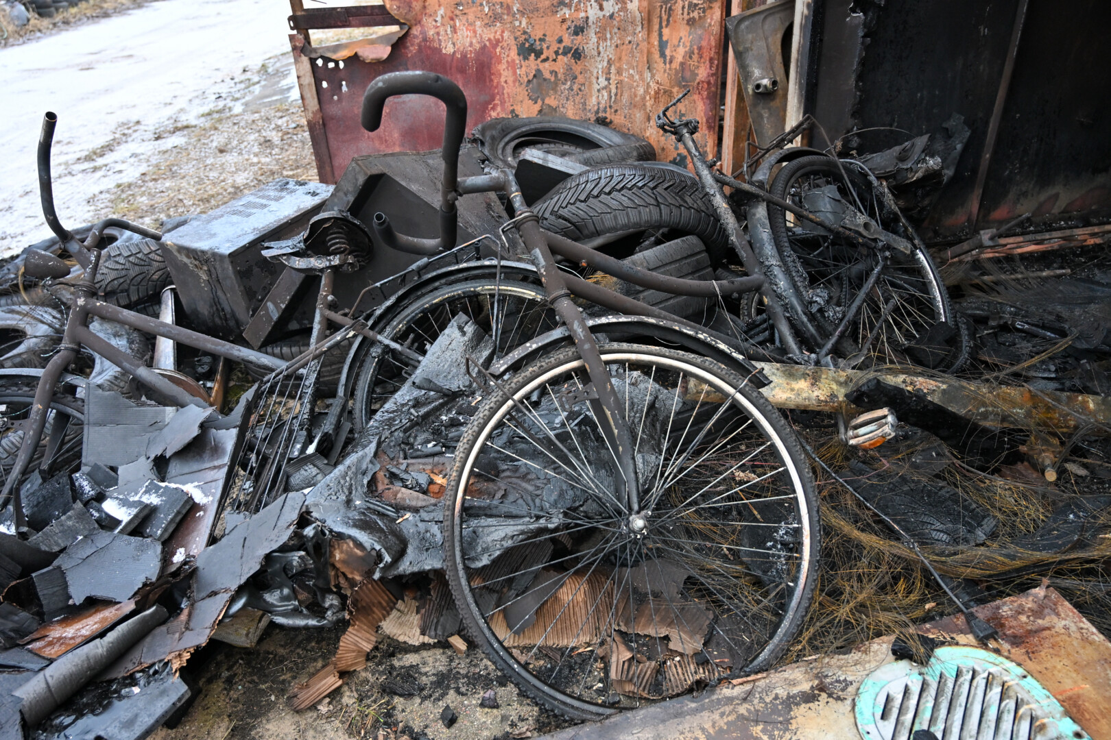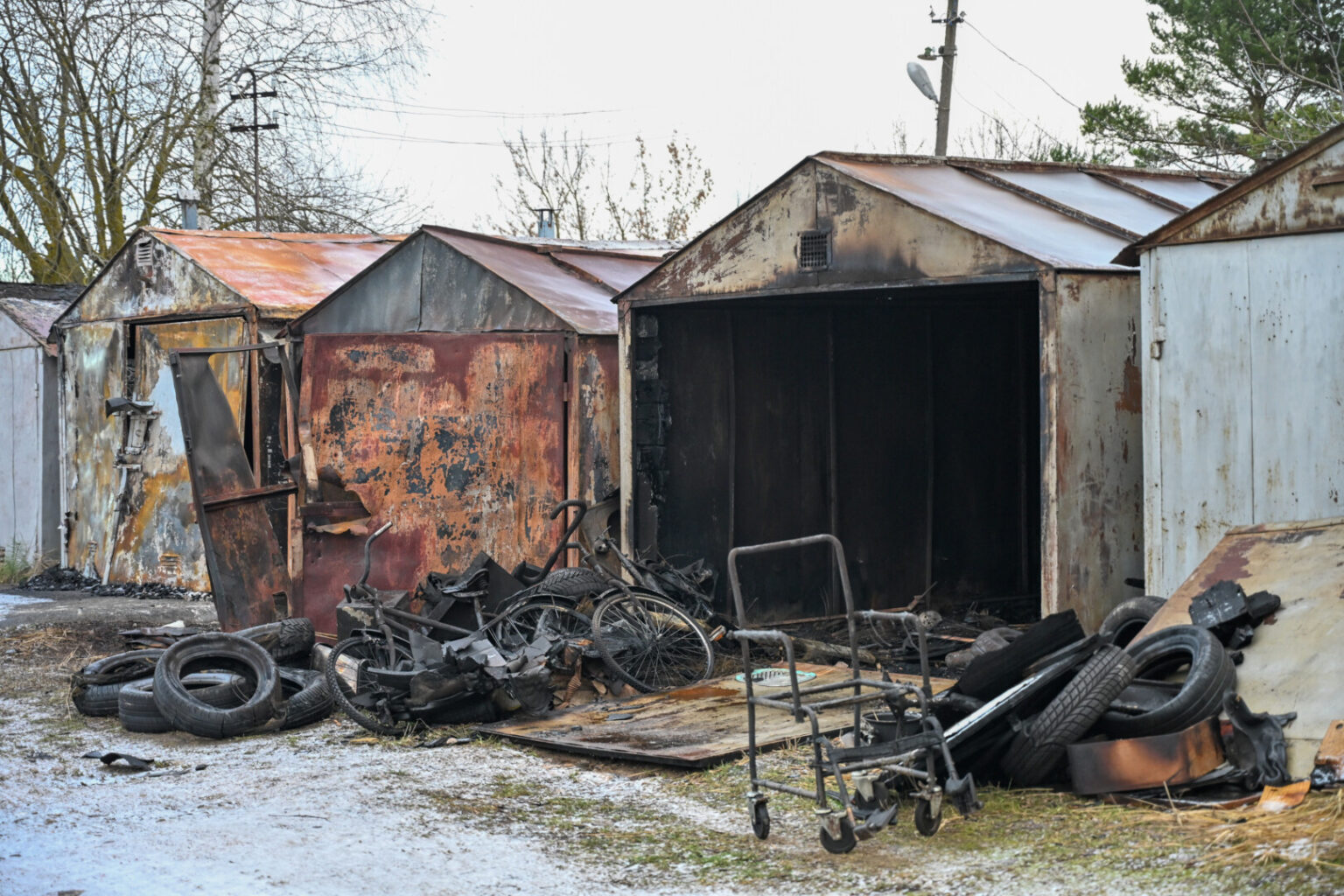 Per gaisrą visiškai išdegė juose buvę daiktai, automobilių dalys, padangos.