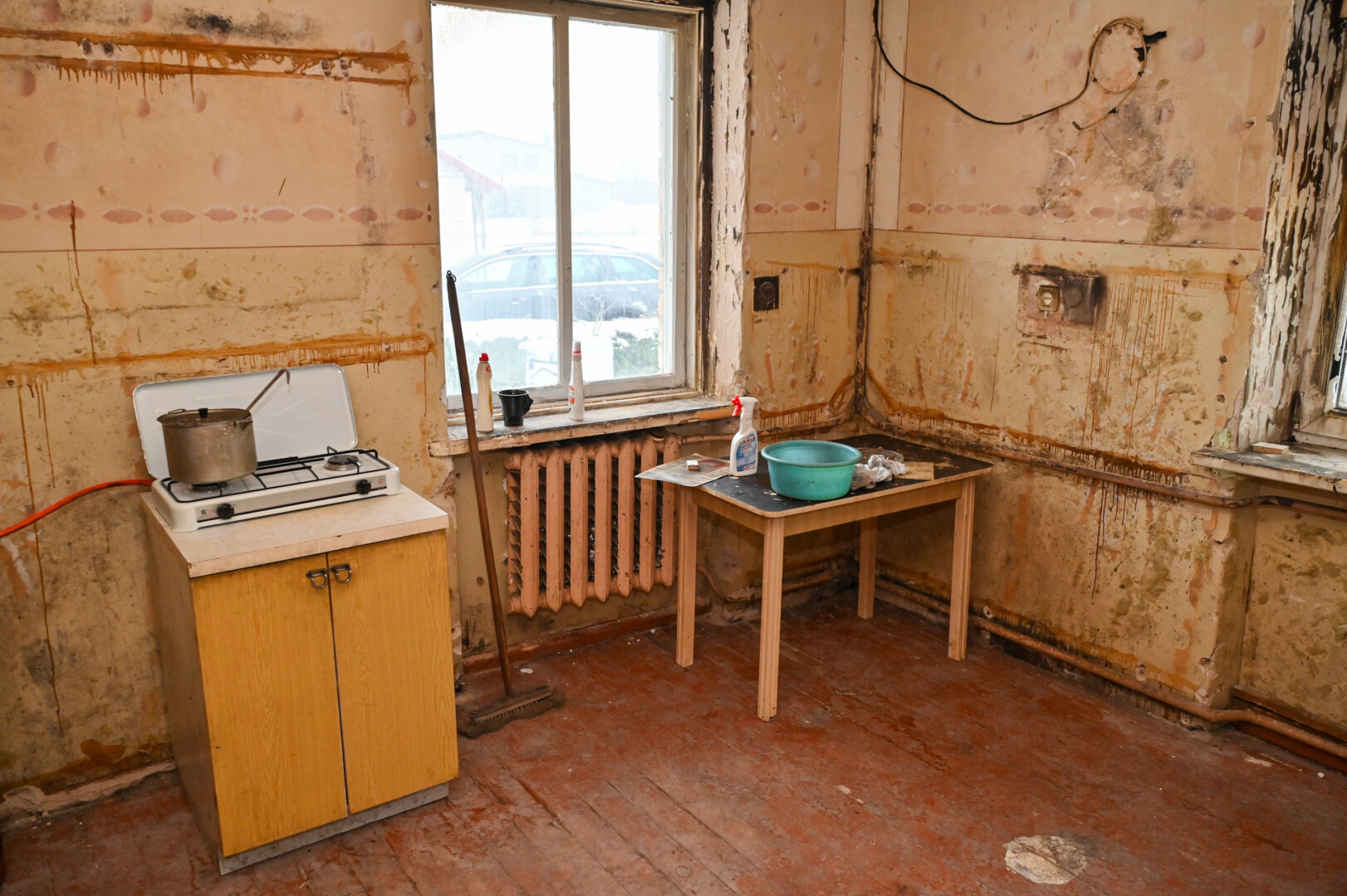 Atskubėję į pagalbą kaimynai, bendruomenė, Naujamiesčio seniūnija tikisi sukurti bent nedidelį kalėdinį stebuklą – dar iki švenčių suremontuoti patalpas, pagelbėti įsigyti buitinę techniką.