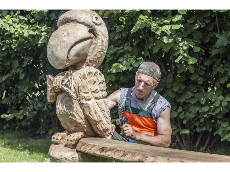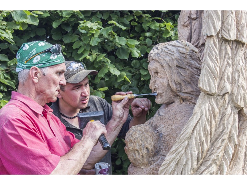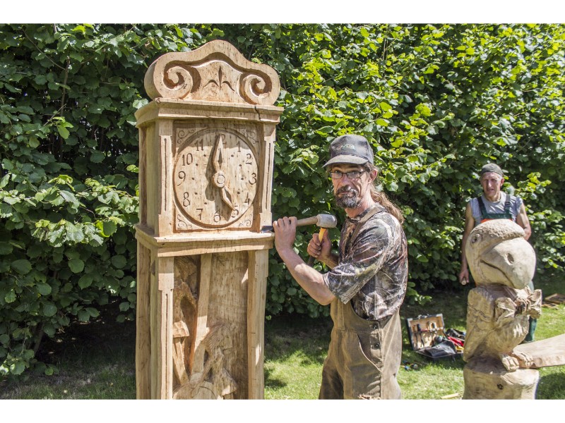 Medžio drožėjas Dalius Žymantas šventėje kūrė medinį laikrodį su švytuokle. Trečią kartą šventėje dalyvaujantis menininkas sako, kad laikrodis – keistas. Ant jo švytuoklės supasi mergaitė ir džiaugiasi jai skirtu laiku, o kita mergaitė bando sustabdyti švytuoklę – lygina raukšles, bando atsijauninti, bet, deja, laiko nesustabdysi. Laikrodžio rodyklės sustingę ant penktos valandos ir neatsitiktinai.