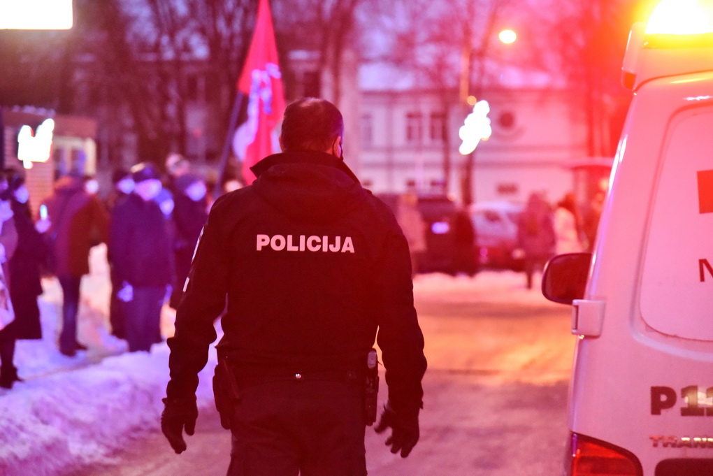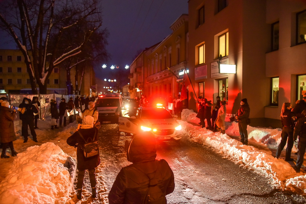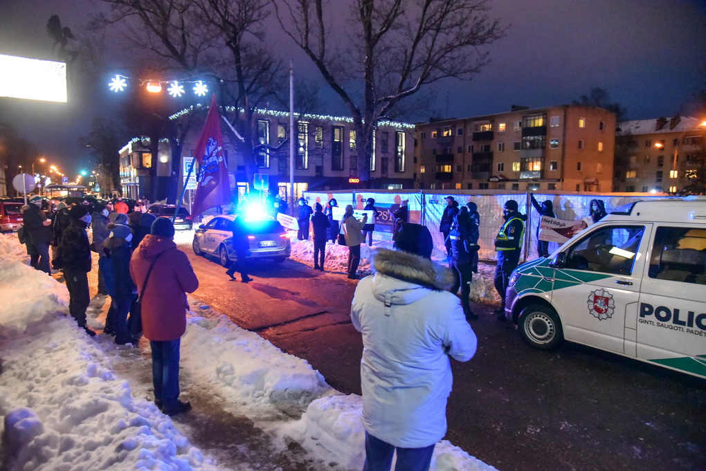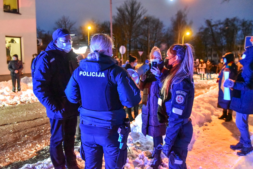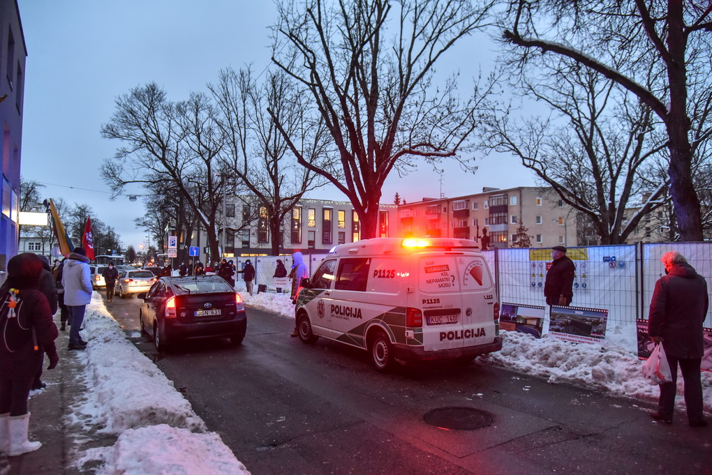 Neilgai trukus Respublikos gatvėje pasirodė ir policijos ekipažas. Išlipę pareigūnai pradėjo teirautis, kas tokios akcijos organizatorius.