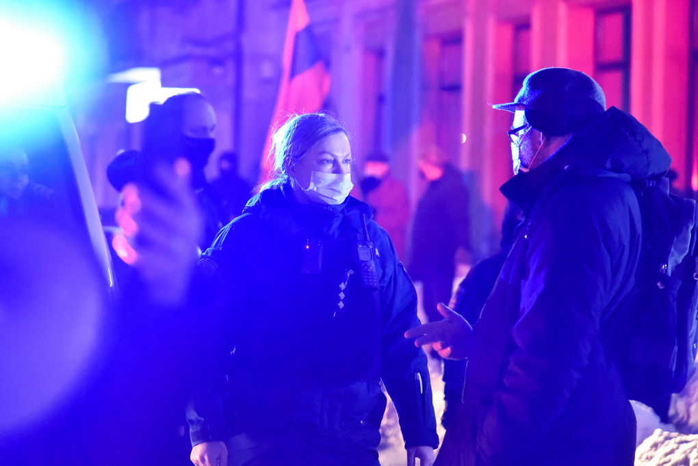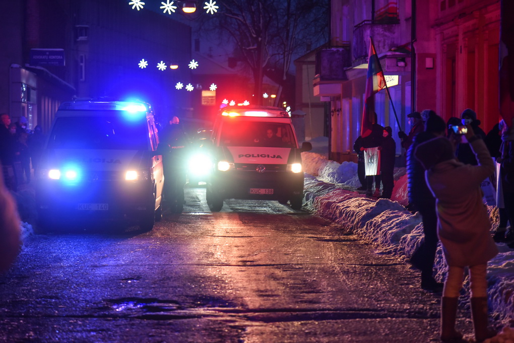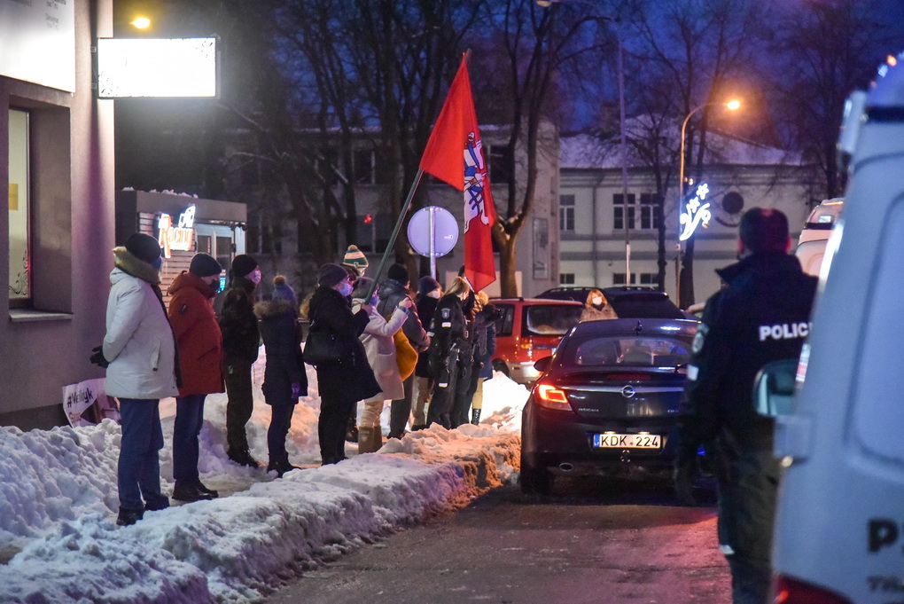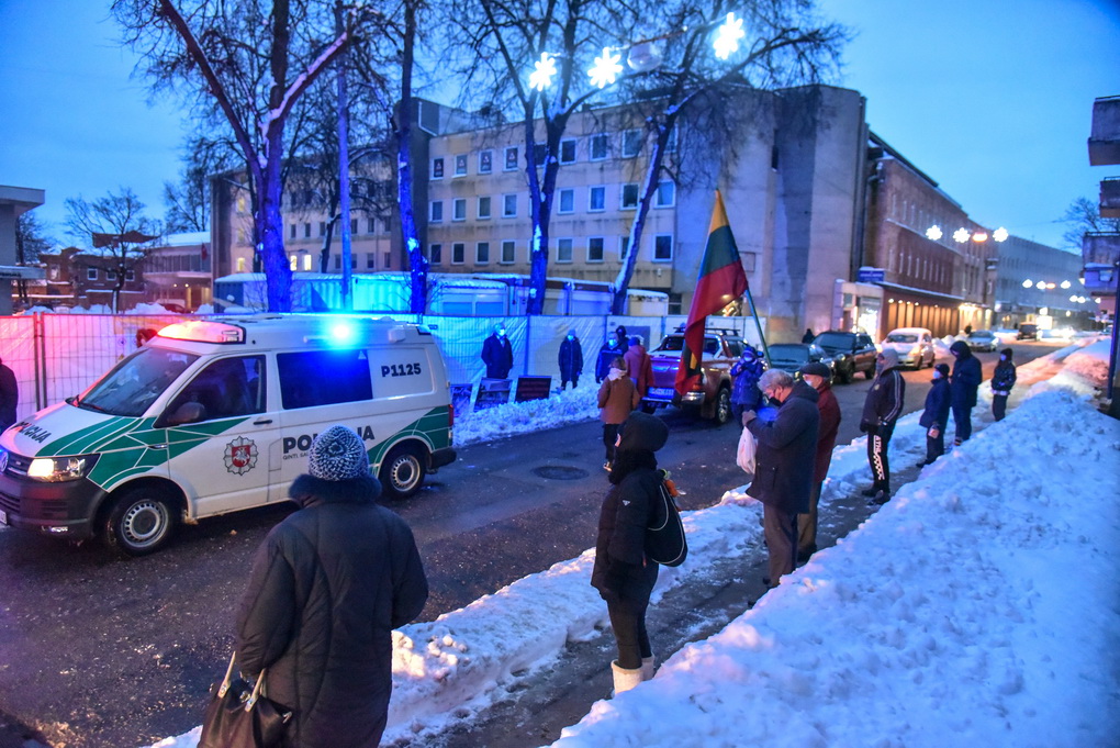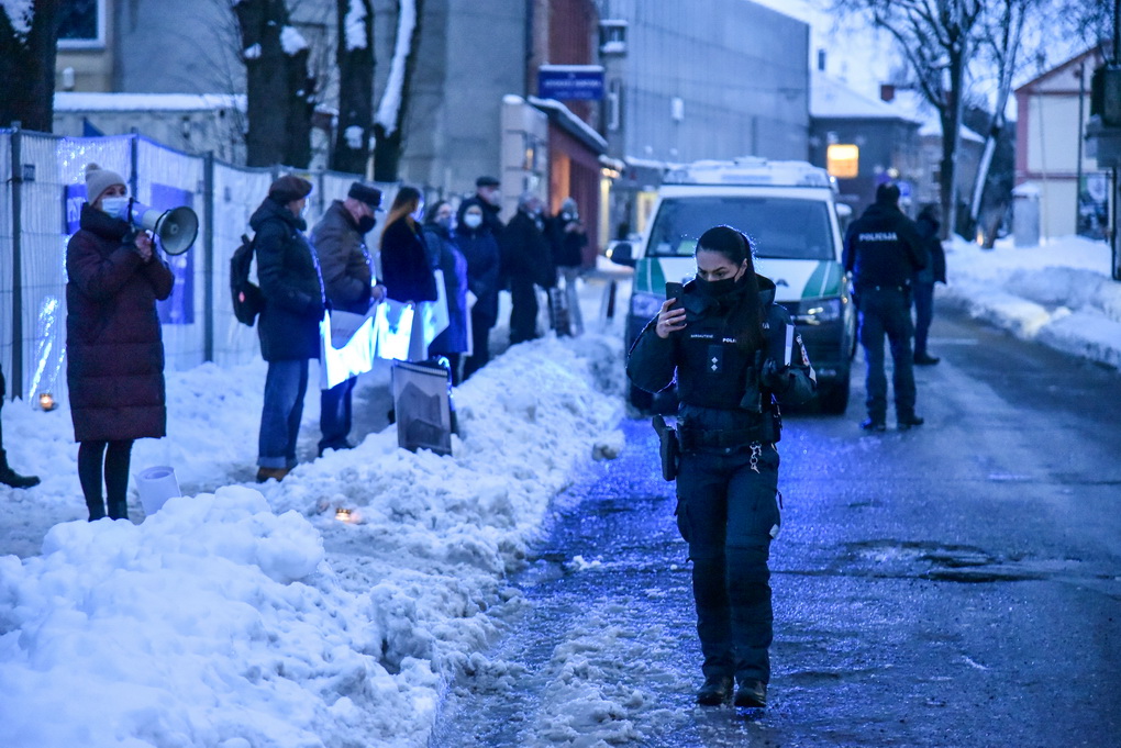 Neilgai trukus Respublikos gatvėje pasirodė ir policijos ekipažas. Išlipę pareigūnai pradėjo teirautis, kas tokios akcijos organizatorius.