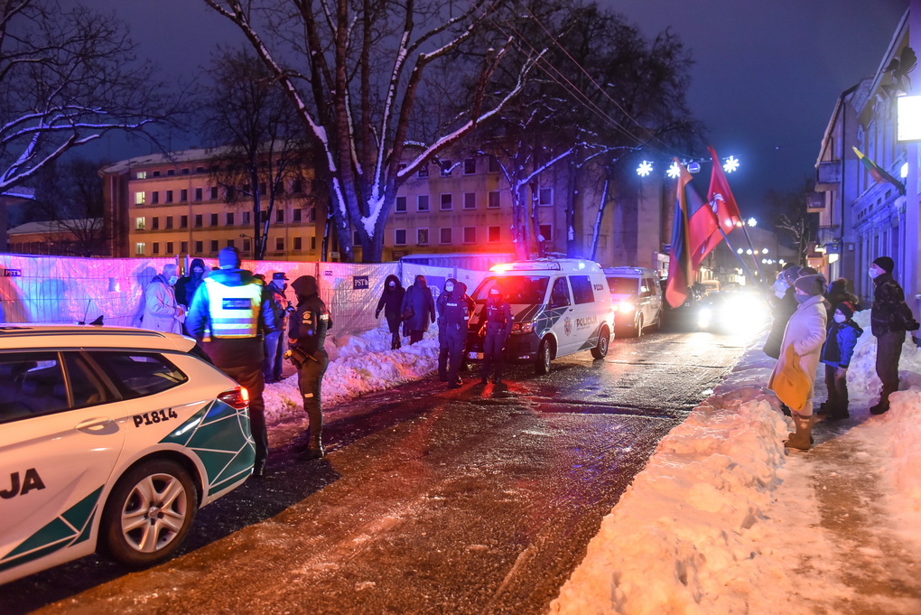 Ja prisistačiusi Laura Mikšionienė teigė, jog toks piketas nepažeidžia jokių karantino reikalavimų, mat žmonės dėvi kaukes ir laikosi saugaus atstumo. Visuomenininkė reikalavo policijos patraukti tarnybinius automobilius, nes šie užstoja piketuotojų plakatus.