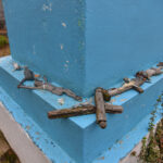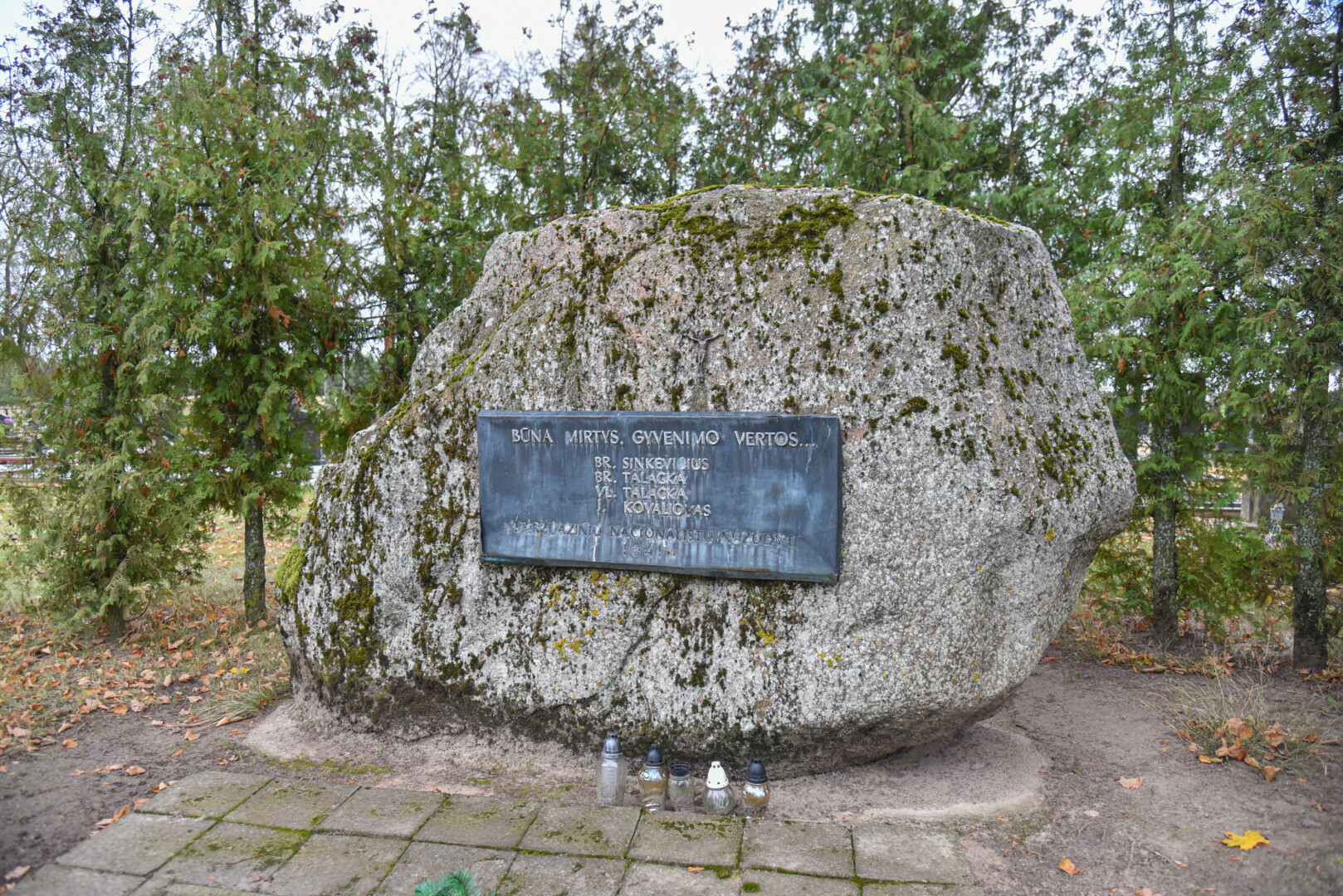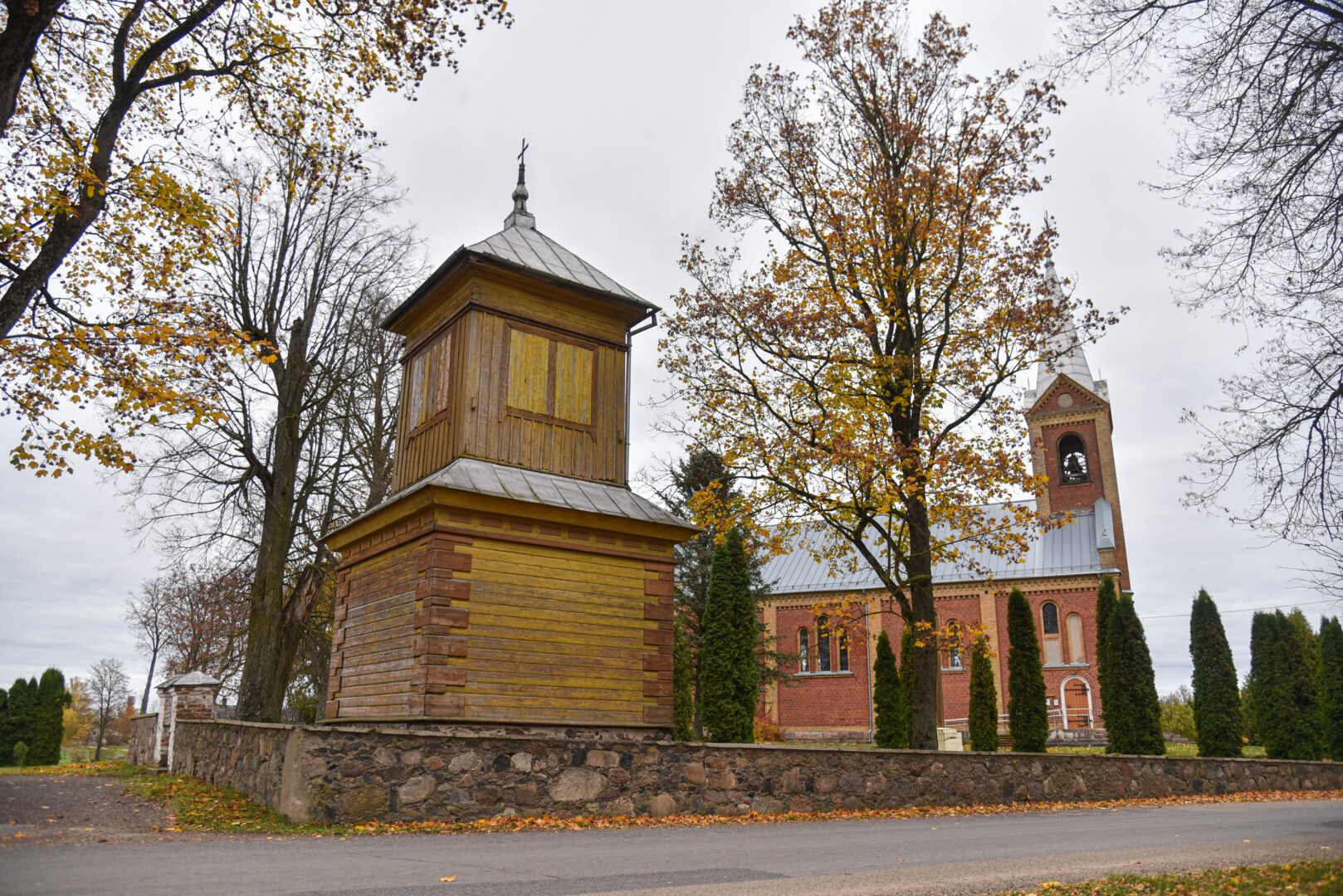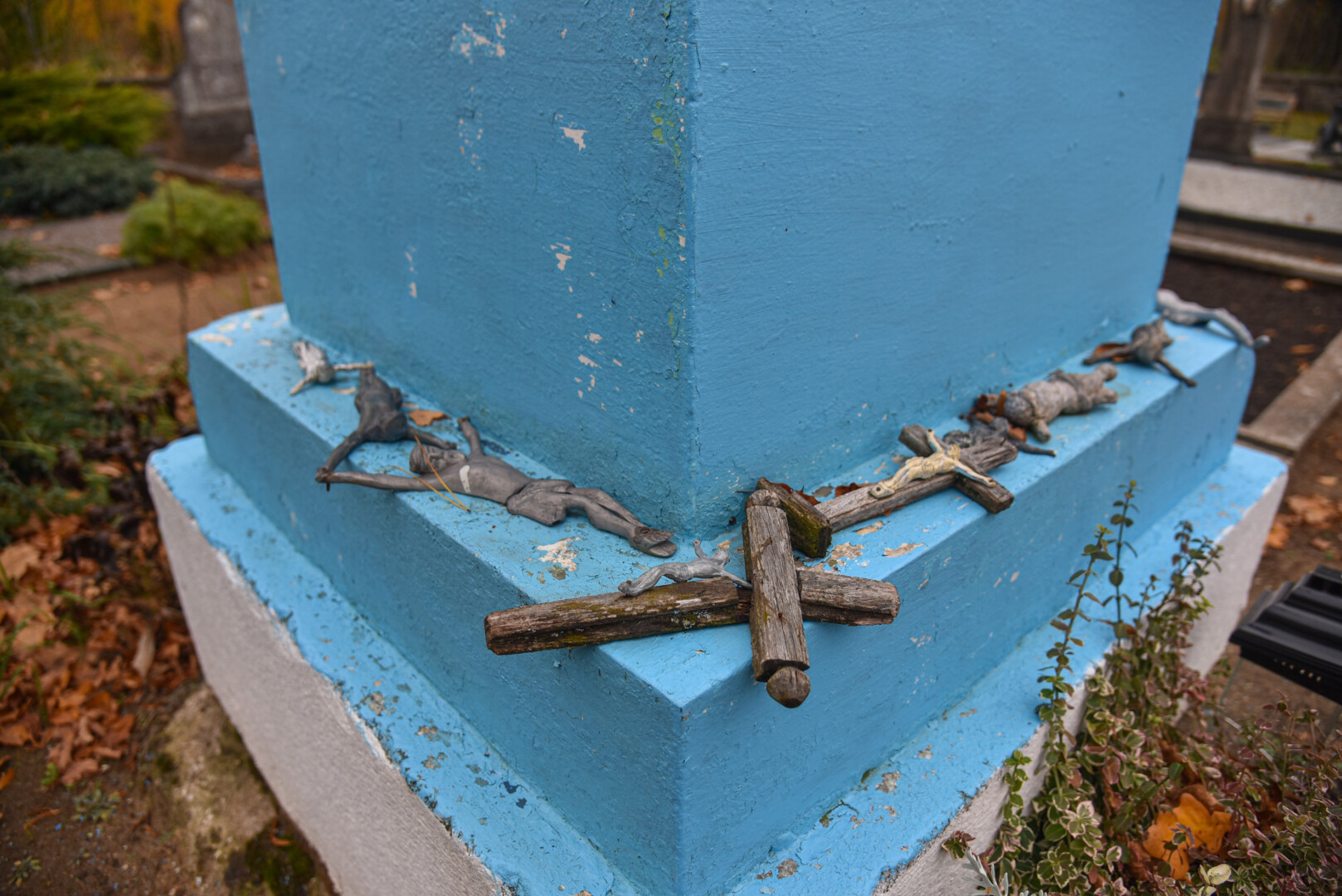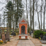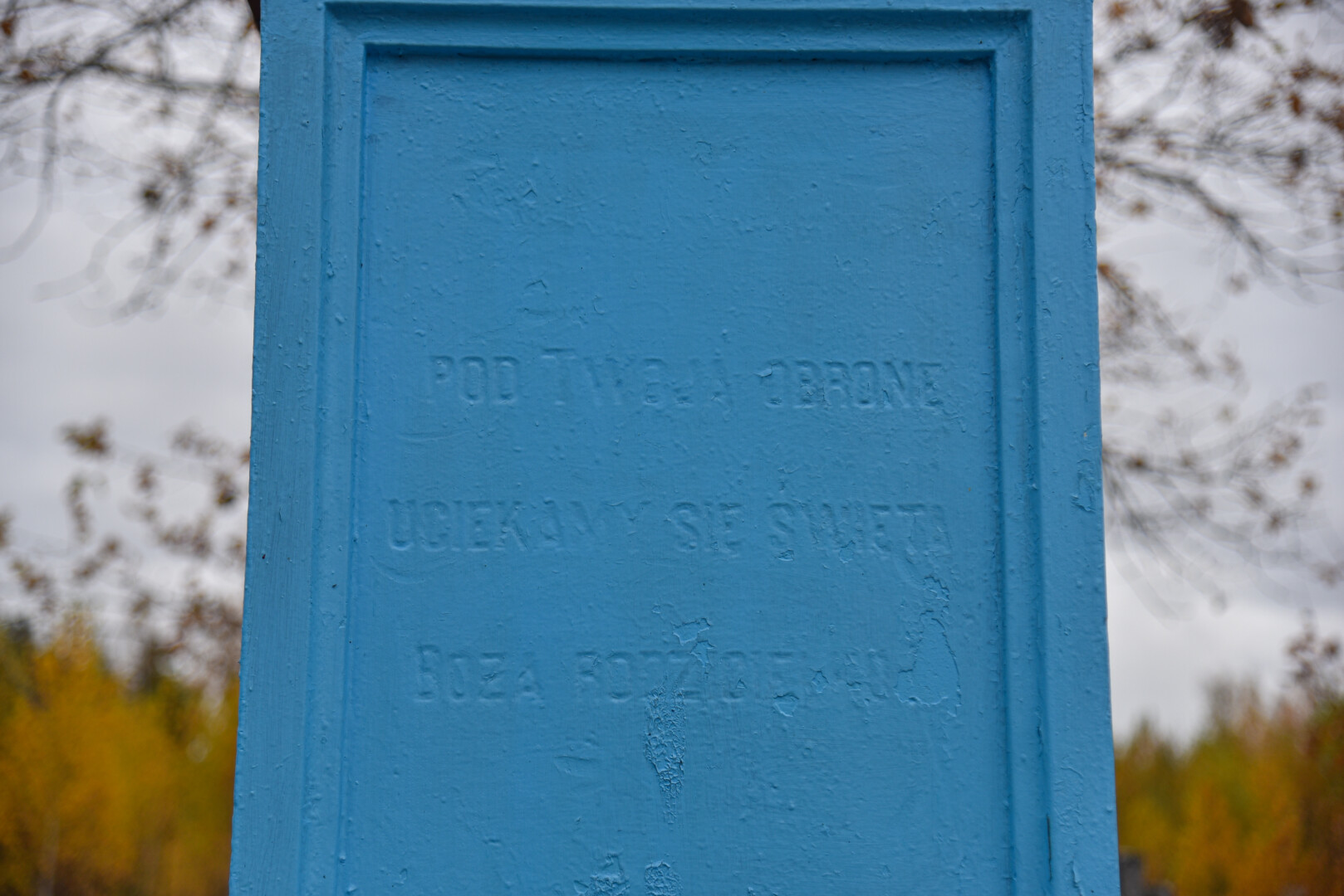 O štai nedidukėse Alančių kapinaitėse Mergelės Marijos statula tikrai stovi. Jos postamentas, o ir Marijos apsiaustas iš tolo šviečia skaisčiai mėlyna spalva.
