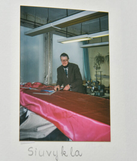 „Pačioj mano darbo pradžioj Lietuvoje gal dar ir nebuvo audinių fabrikų, tad kostiumus ar paltus dažniausiai siūdavau iš Rygoje pagamintų audinių. Gerai atsimenu audinį „komunaro“ pavadinimu“, – pasakoja siuvėjas.