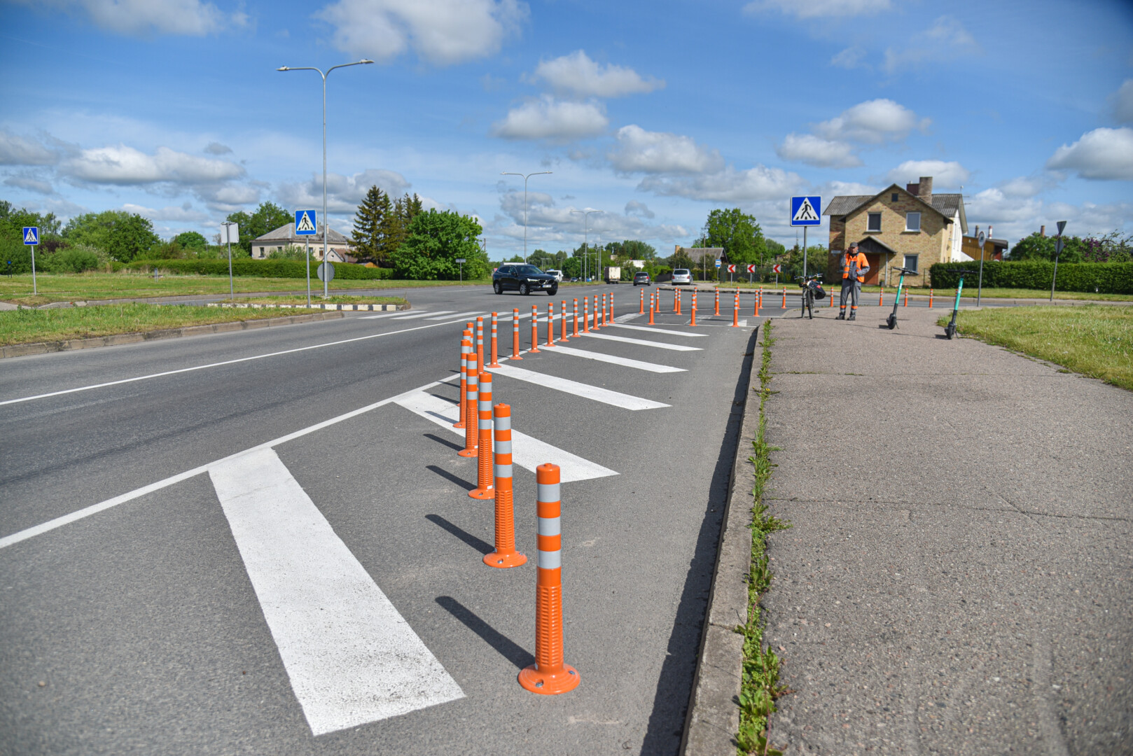 „Vakarinėje gatvėje vien tik horizontalaus ženklinimo neužtenka, pėstieji tik stovėtų ir vis tiek bijotų žengti į gatvę. Dabar jie jausis saugiau, gali prieiti arčiau važiuojamosios dalies“, – sako D. Vadluga.