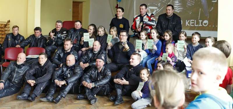 Kartu su mokiniais motociklininkai dalyvavo viktorinoje, atsakinėjo į įvairius klausimus, prisiminė kelių ženklų reikšmes, mokė vaikus būti atsargiais eismo dalyviais.