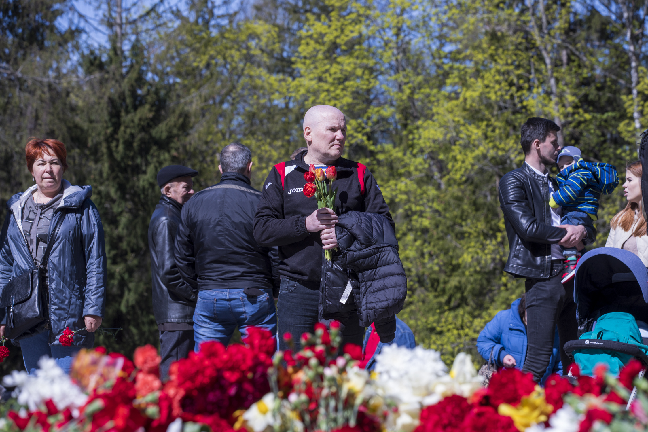 Į kapines su gėlėmis vykstančius piliečius pasitinka nedidelė grupelė Kyjivui palaikymą išreiškiančių asmenų, rankose laikančių Rusijos sukelto karo Ukrainoje nuotraukų vaizdus, sugriautus miestus bei Antrojo pasaulinio karo nuotraukas. Iniciatyvos organizatorius Olegas Šurajevas teigė, kad tokiu būdu siekiama kalbėtis su Kremliaus agresiją palaikančiais asmenimis, kadangi, anot jo, į kapines besirenkančių piliečių tikslas nėra pagerbti Antrojo pasaulinio karo metais žuvusius karius.