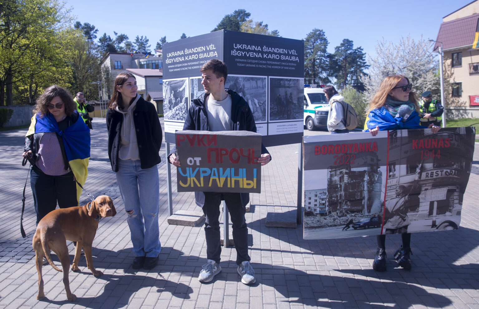 Taip pat prie Antakalnio kapinių įrengti stendai „Ukraina šiandien vėl išgyvena karo siaubą“, kuriuose liudijami karo Ukrainoje nusikaltimai.