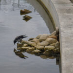 „Senvagėje vanduo taip nuslūgęs, kad kyšo kanalizacijos šuliniai, vamzdžiai, net vėžio skulptūrą laikantys cemento blokai matyti. Medinis tiltelis, vedantis fontano link, tiesiog kybo ore“, – pasakojo Viktoras.