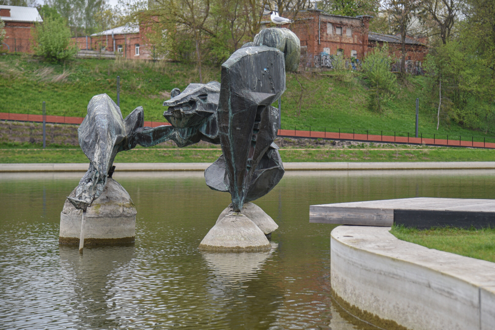 „Senvagėje vanduo taip nuslūgęs, kad kyšo kanalizacijos šuliniai, vamzdžiai, net vėžio skulptūrą laikantys cemento blokai matyti. Medinis tiltelis, vedantis fontano link, tiesiog kybo ore“, – pasakojo Viktoras.