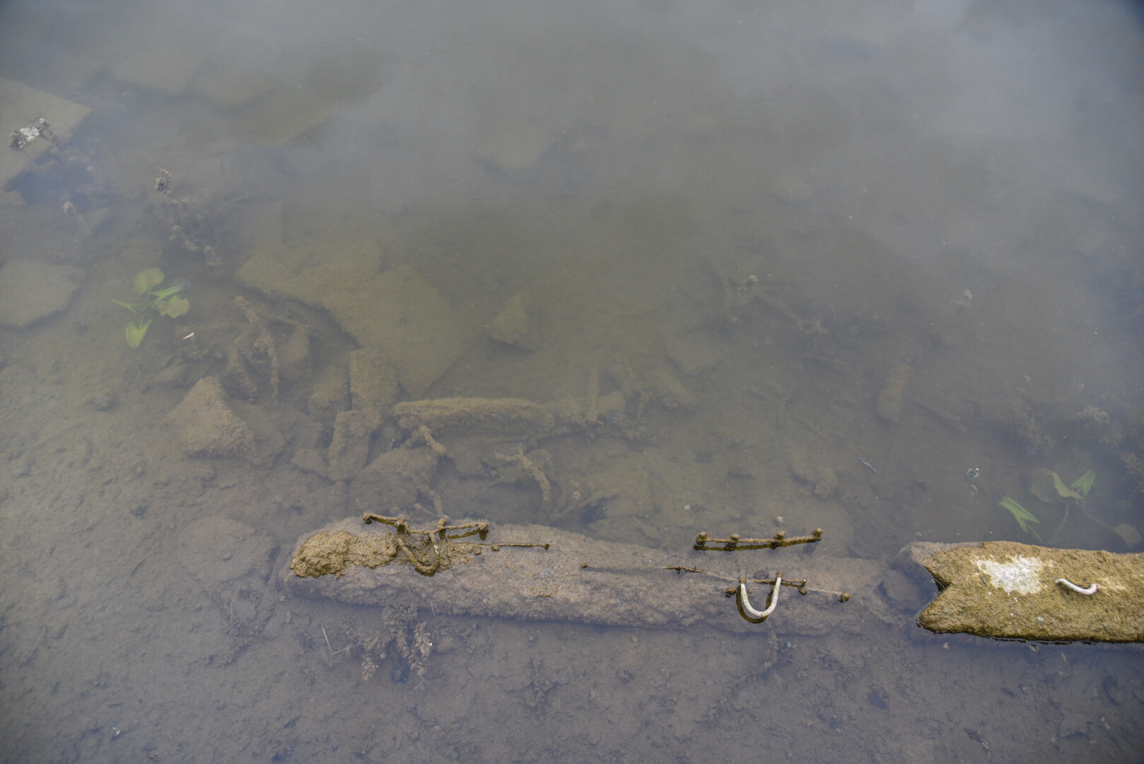 Nuslūgus vandeniui, atsivėrė į tvenkinį sumesti jau dumblu apnešti įvairūs žmonių daiktai.