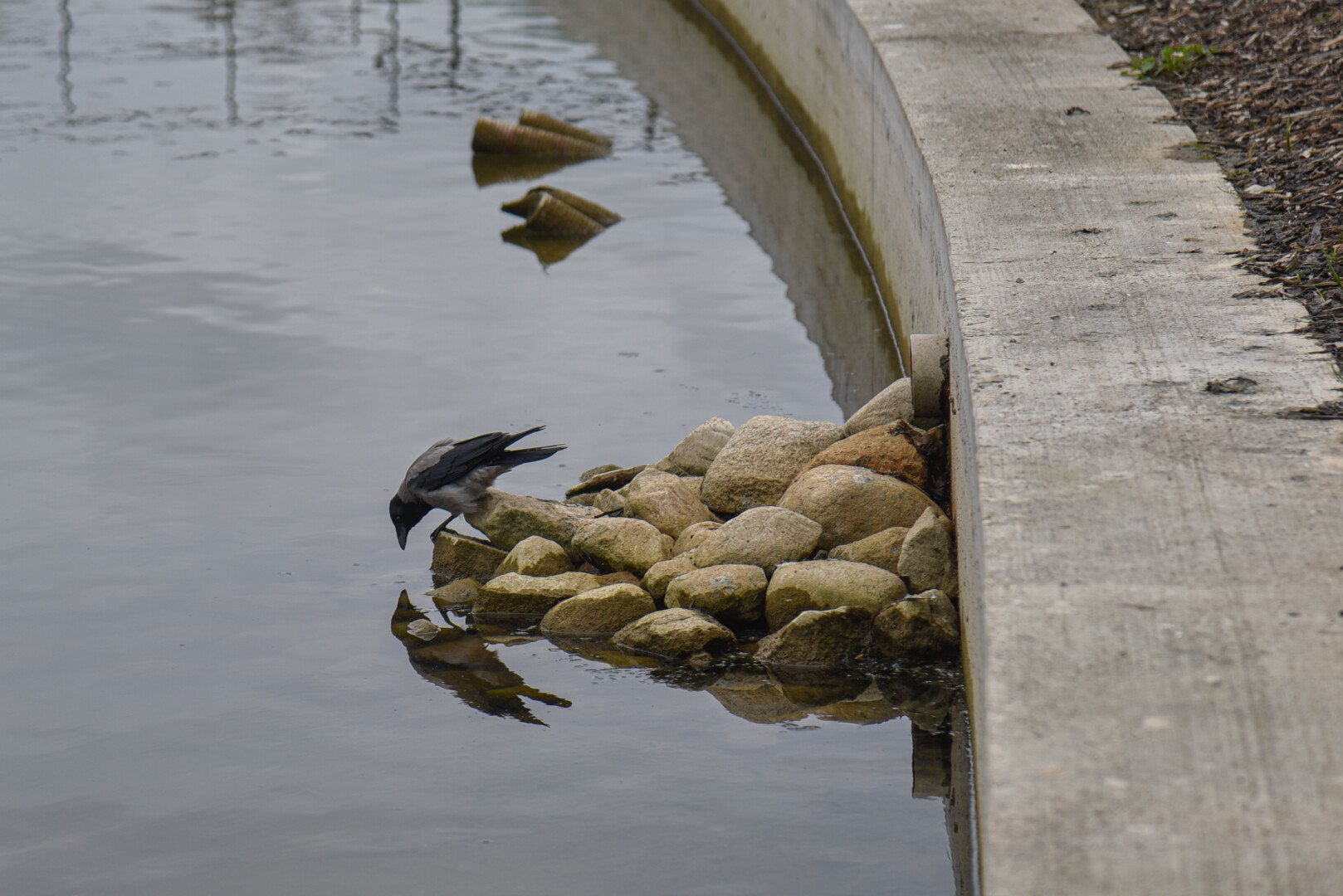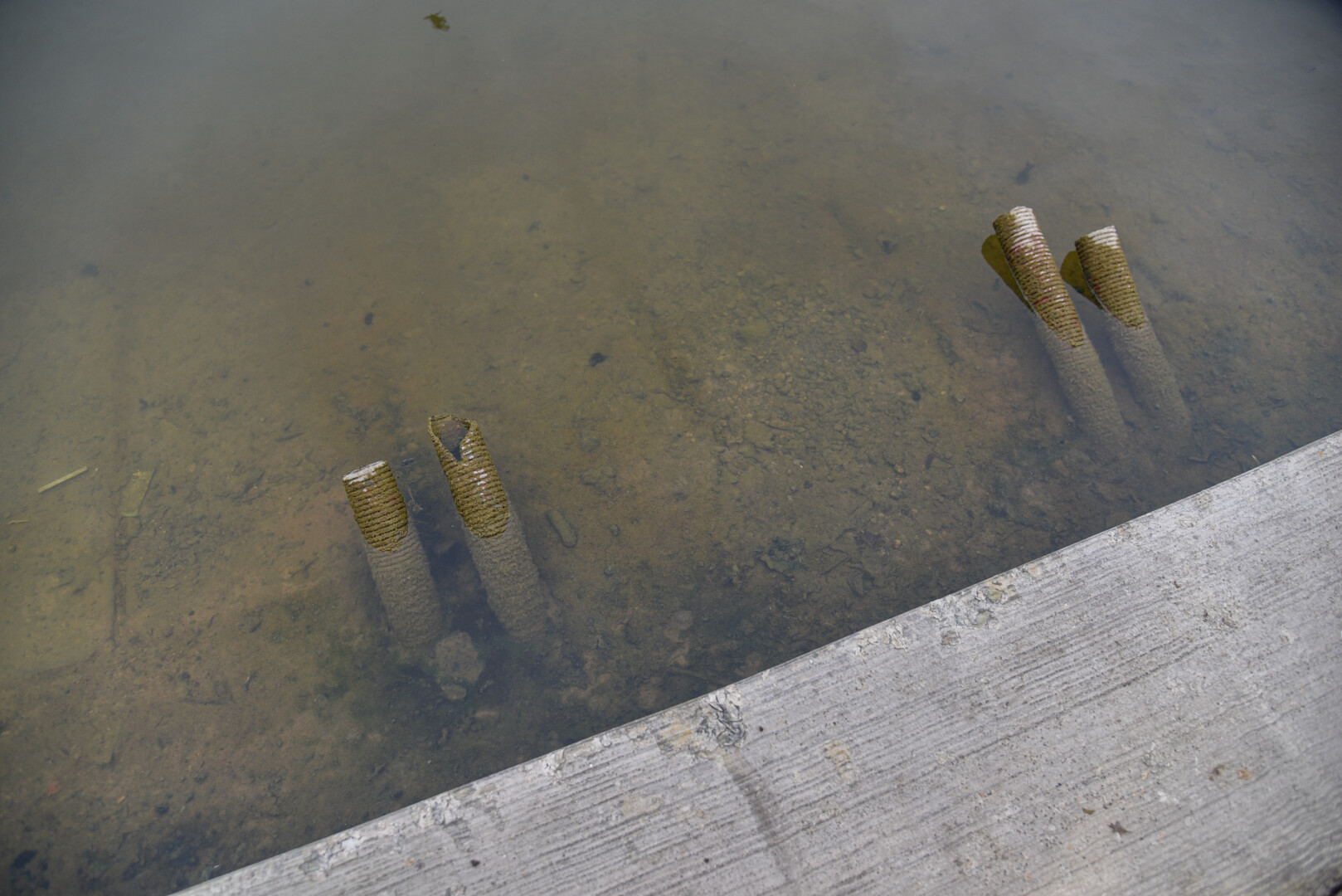 Iki krantų viršaus tyvuliavęs vanduo staiga nuseko tiek, kad atsivėrė po juo slypintys kanalizacijos įrenginiai, betono blokai.