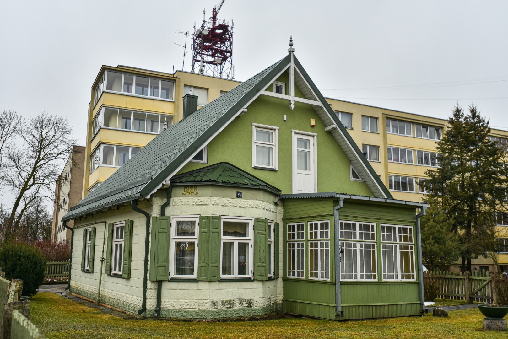 Vienas gražiausių medinės senosios architektūros namų – Kranto gatvės 35A numeriu pažymėtas žaliasis namas į saugomųjų sąrašą neįtrauktas, pritrūkus istorinių duomenų. P. Židonio nuotr.