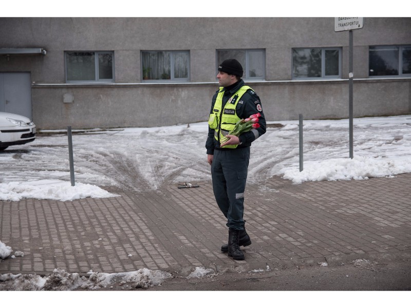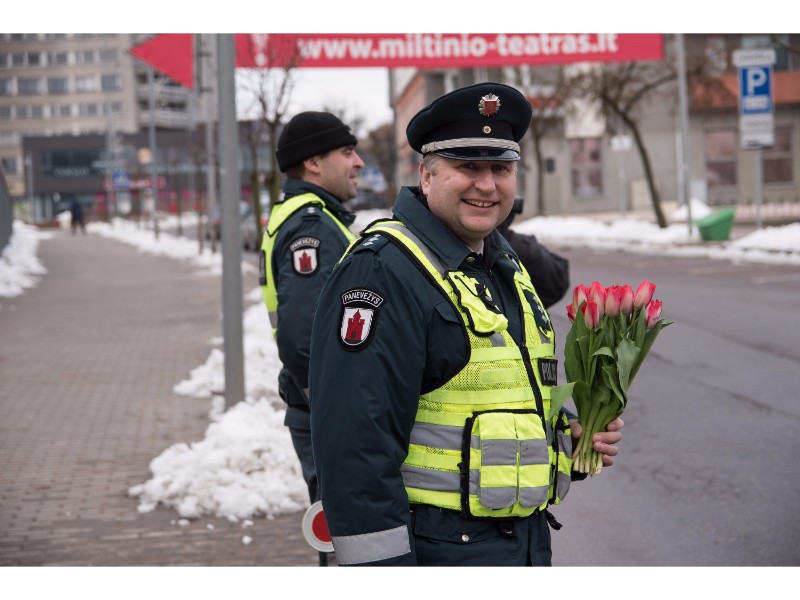 Moters dienos proga policininkai panevėžietes nuo pat ankstyvo ryto sveikino Elektros gatvėje. Trisdešimt penki tulpių žiedai pareigūnų rankose ištirpo akimirksniu. Į tą pačią vietą jie žada grįžti po pietų ir pradžiuginti dar daugiau moterų vairuotojų.