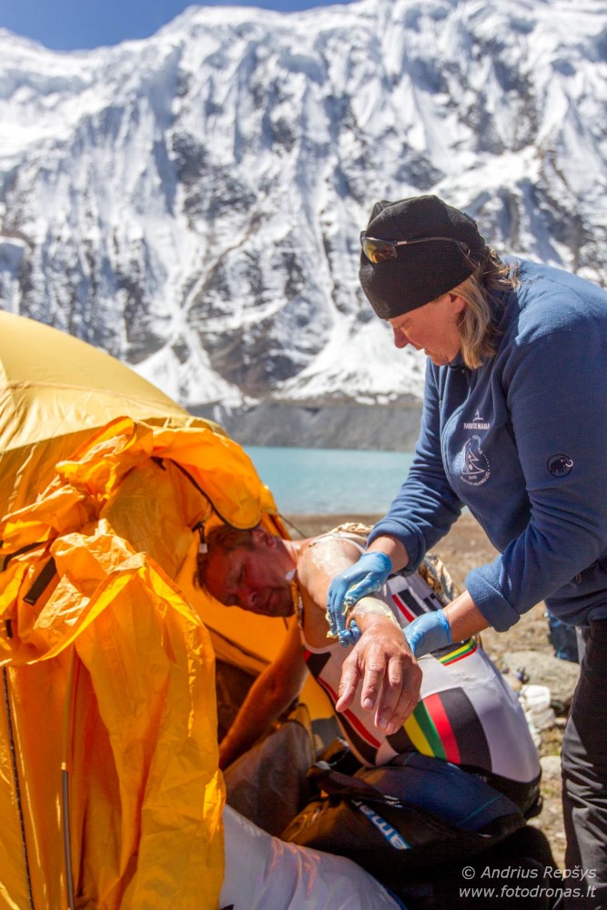 „Iki šiol niekada neteko kopti į tokio sudėtingumo kalnus. Žinoma, palapines ir daiktus padėjo užsinešti šerpai, bet kalnuose tie penkiasdešimt kilometrų, kuriuos reikėjo įveikti per dieną, tapo nemažu išbandymu“, – pasakojo sportininkas.