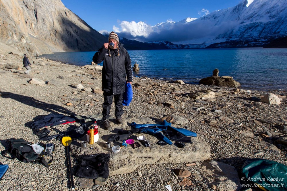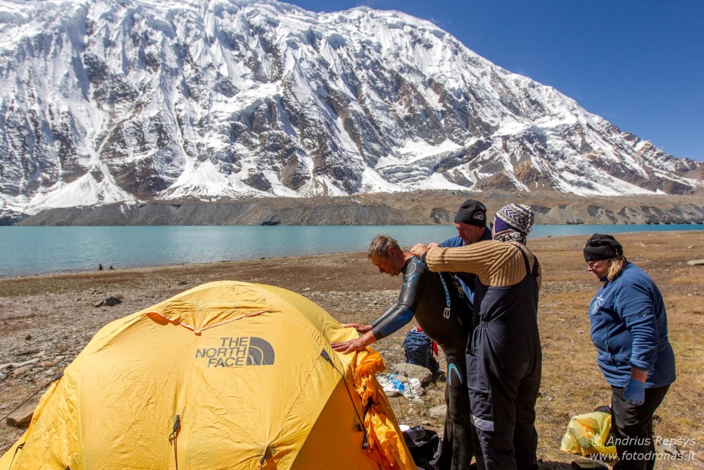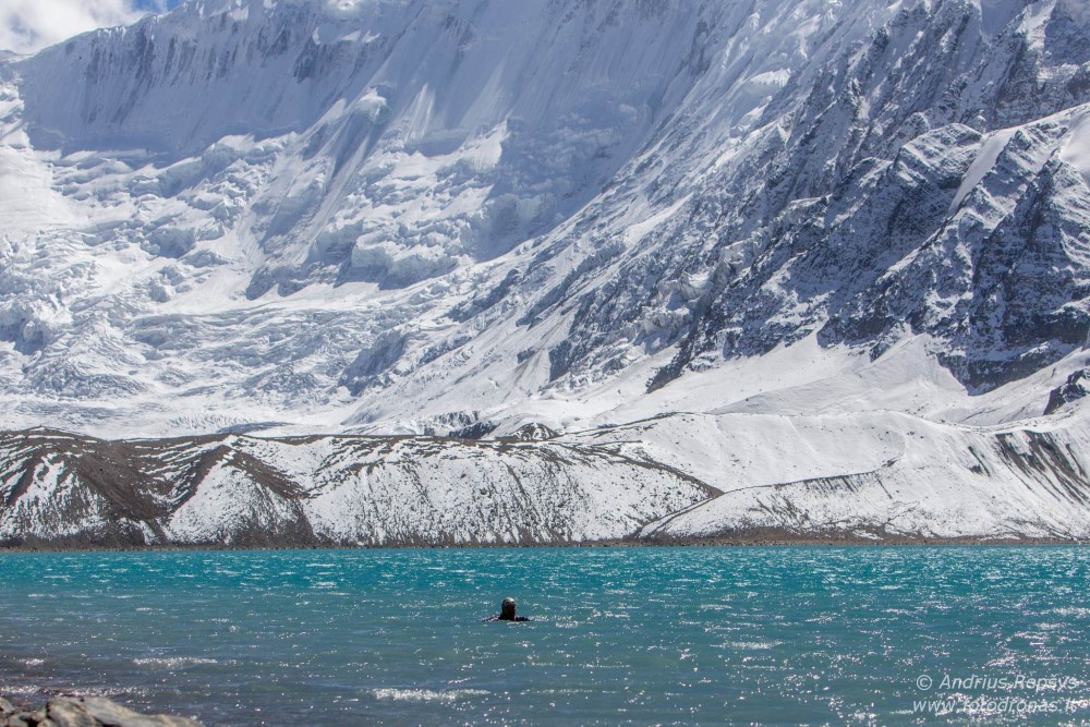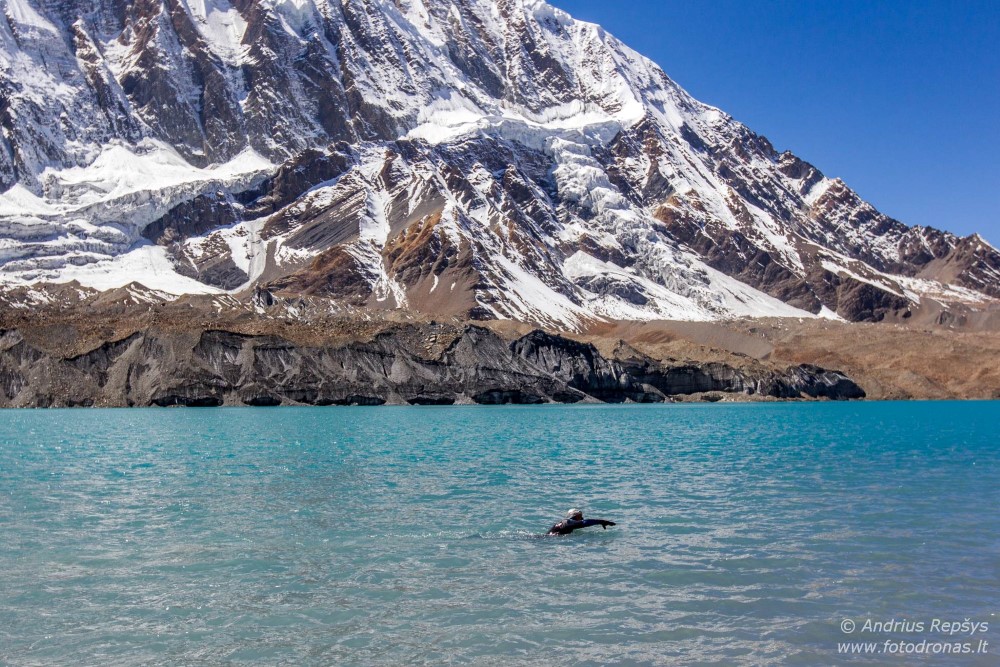 Geležiniu žmogumi tituluojamas Vidmantas Urbonas perplaukė aukščiausią pasaulyje, Himalajų kalnuose tyvuliuojantį gėlavandenį Tiličo ežerą.