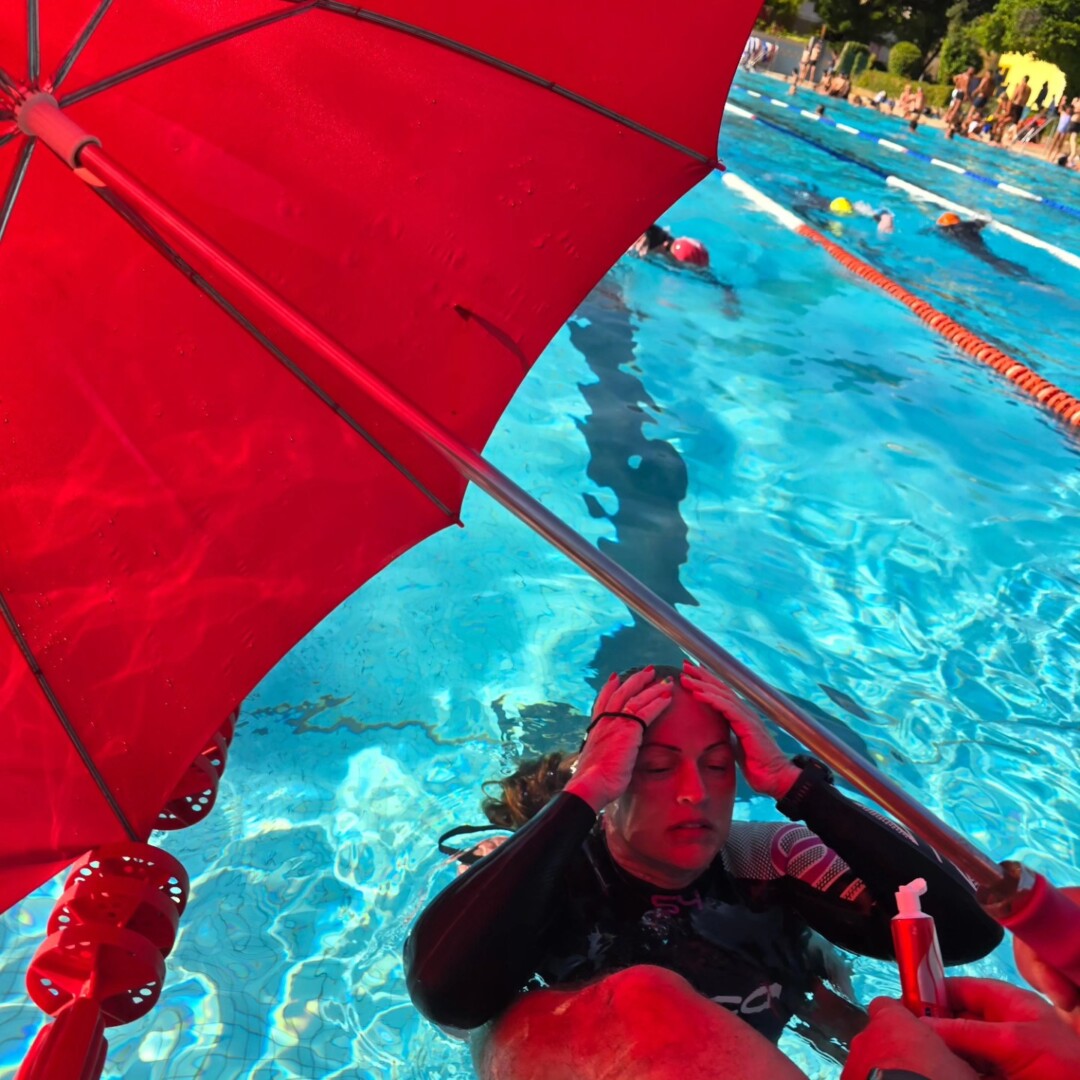 Net 35–40 °C laipsnius siekęs karštis ir tiesioginiai saulės spinduliai tapo didžiausiu išbandymu baseine. Plaukimas, suplanuotas įveikti per 16 valandų, tapo išties alinantis, bet geležine ledi tituluojama sportininkė jį įveikė.
