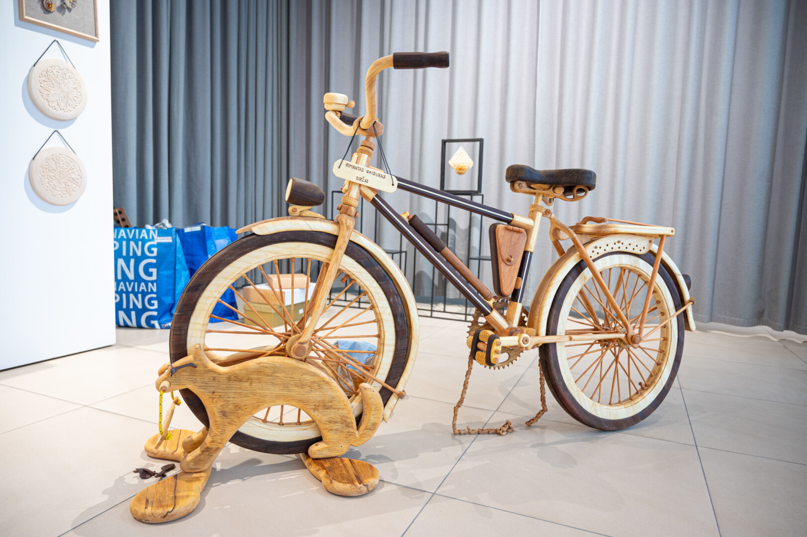 Tautodailininkas Rimantas Gaidukas parodai iš medžio išdrožė dviratį.
