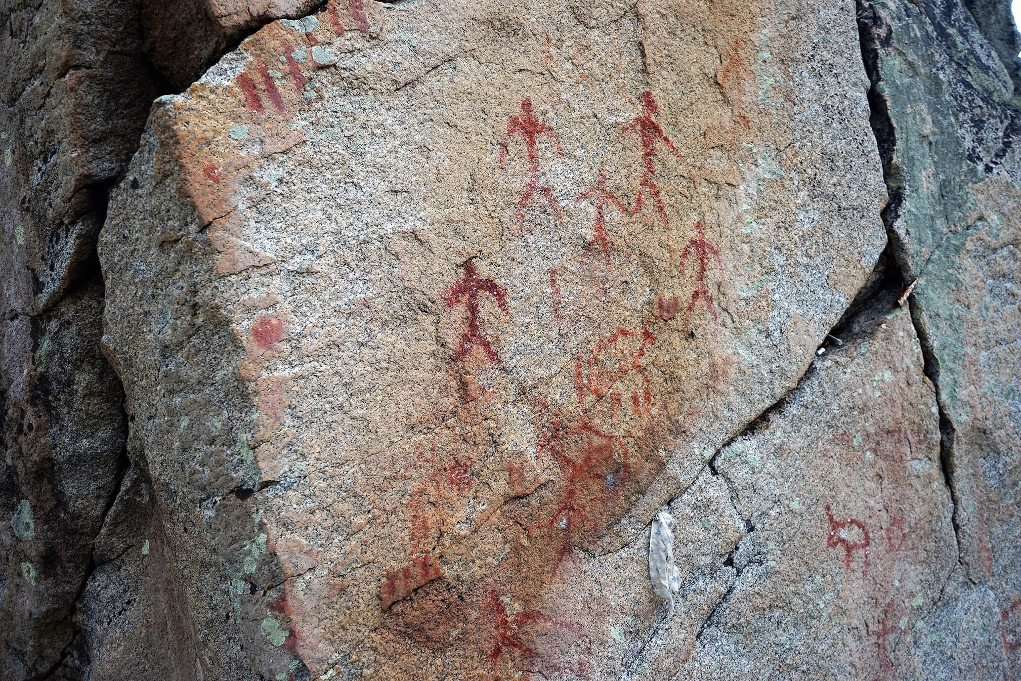 Uolose palikti piešiniai datuojami labai skirtingai: vieni čia – dar iš neolito laikų, kiti atsiradę jau viduramžiais. Įsivaizduojantiems juos ryškiaspalvių figūrų pavidalais tektų kiek nusivilti. Piešinių išsaugojimu daug metų nesirūpinta, net priešingai: jie siejasi su šamanizmu, o šis sovietmečiu buvo draudžiamas, tad ir uolų piešinių konservuoti nebuvo svarbu. Šiandien šios srities tyrinėtojams rasti piešinių dažnai būna itin sunku – tikslios jų koordinatės nebūna žinomos. Net ir atsidūrus reikiamoje vietoje neretai piešinį pastebėti nelengva. „Archeologai piešinius perskaito skirtingai. Būna, kad pastebi jį toje vietoje tik po dešimto karto. Čia reikia kalbėti ir apie mokslininko sėkmę“, – šypteli antropologas. Patys evenkai tiki, kad piešiniai nuolat keičiasi, gali čia pasislėpti, čia vėl pasirodyti ir perduoti vis skirtingą informaciją.