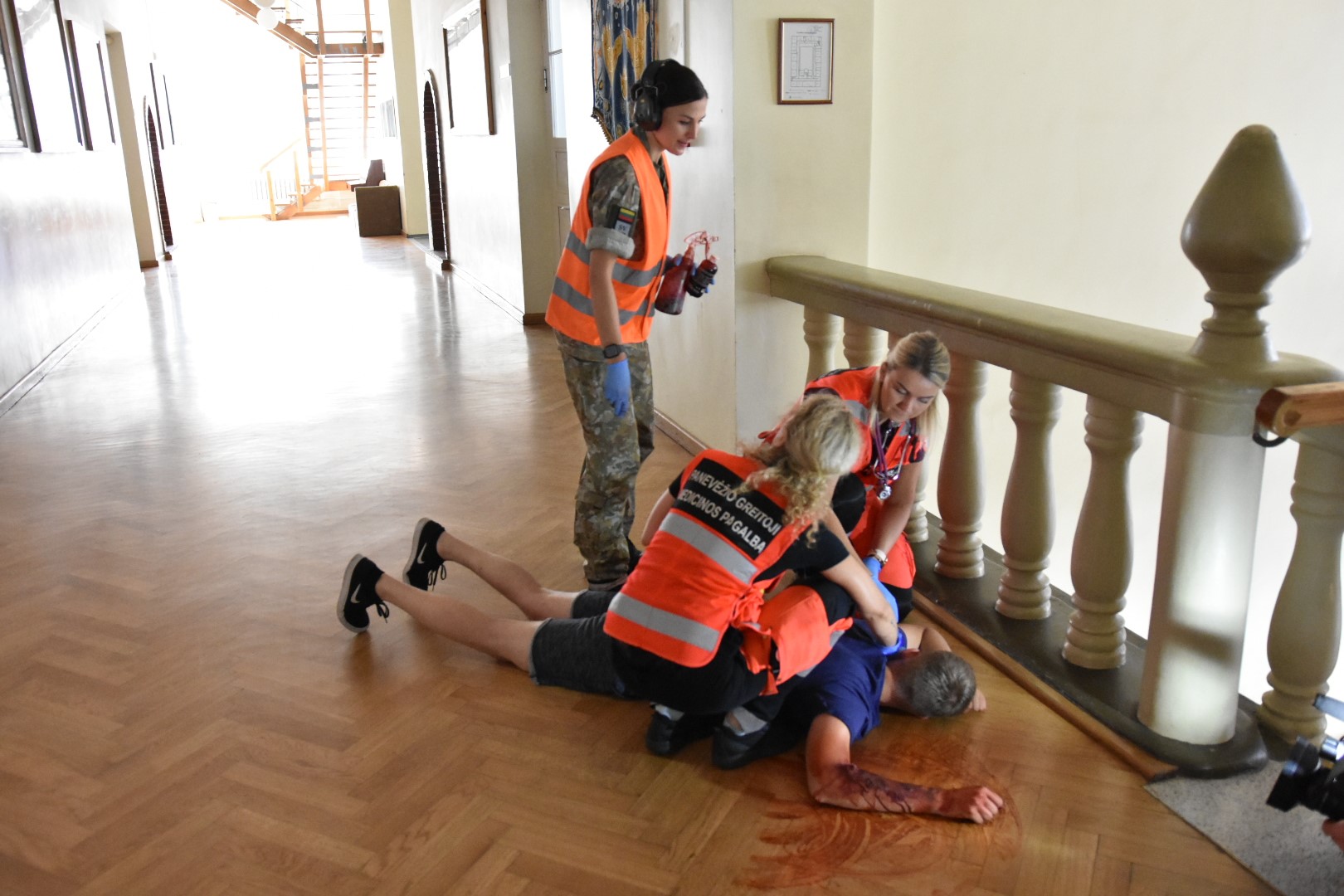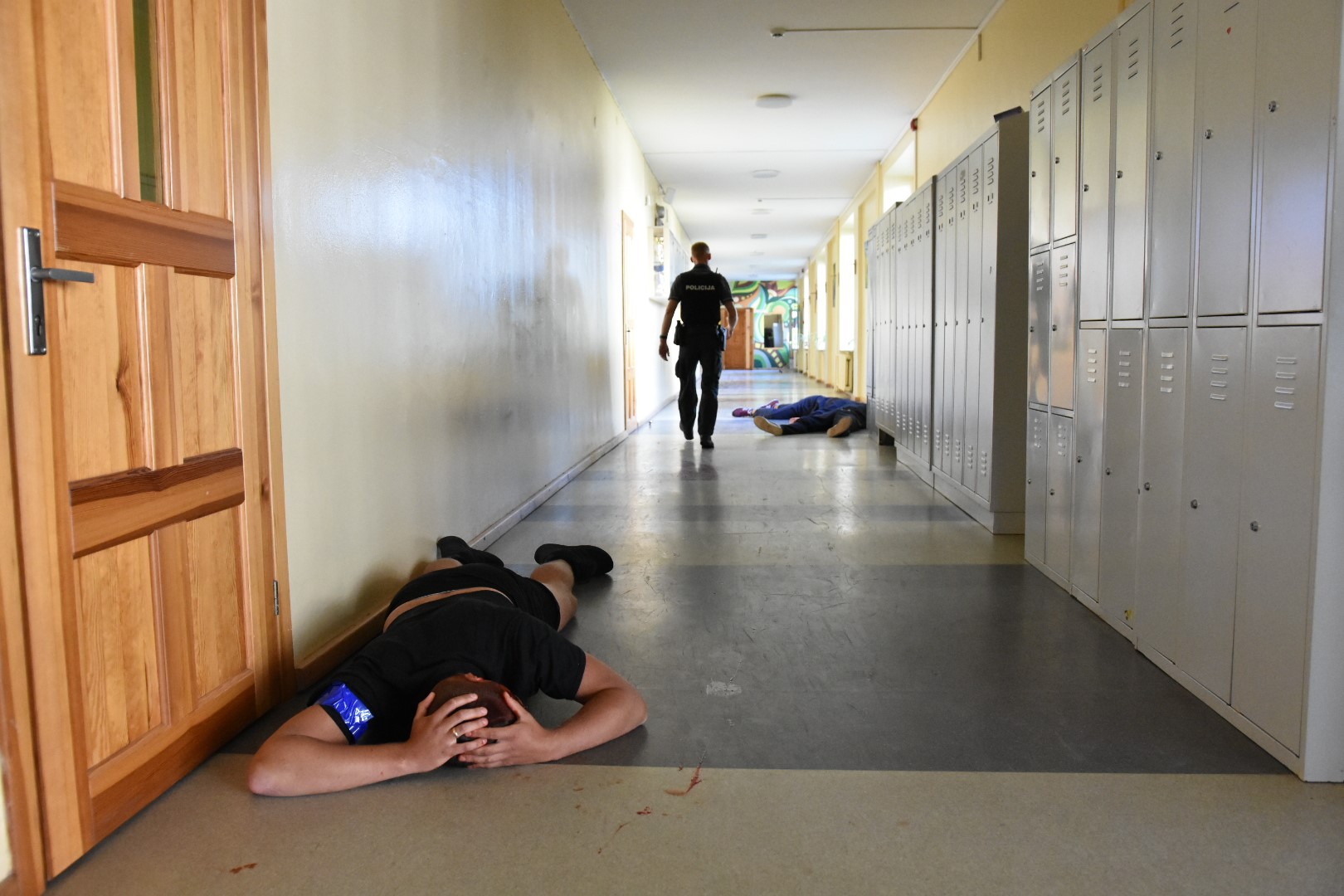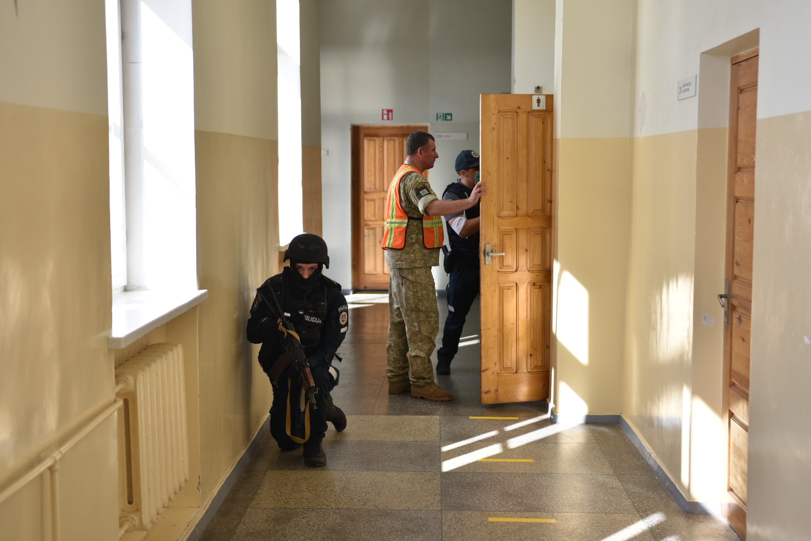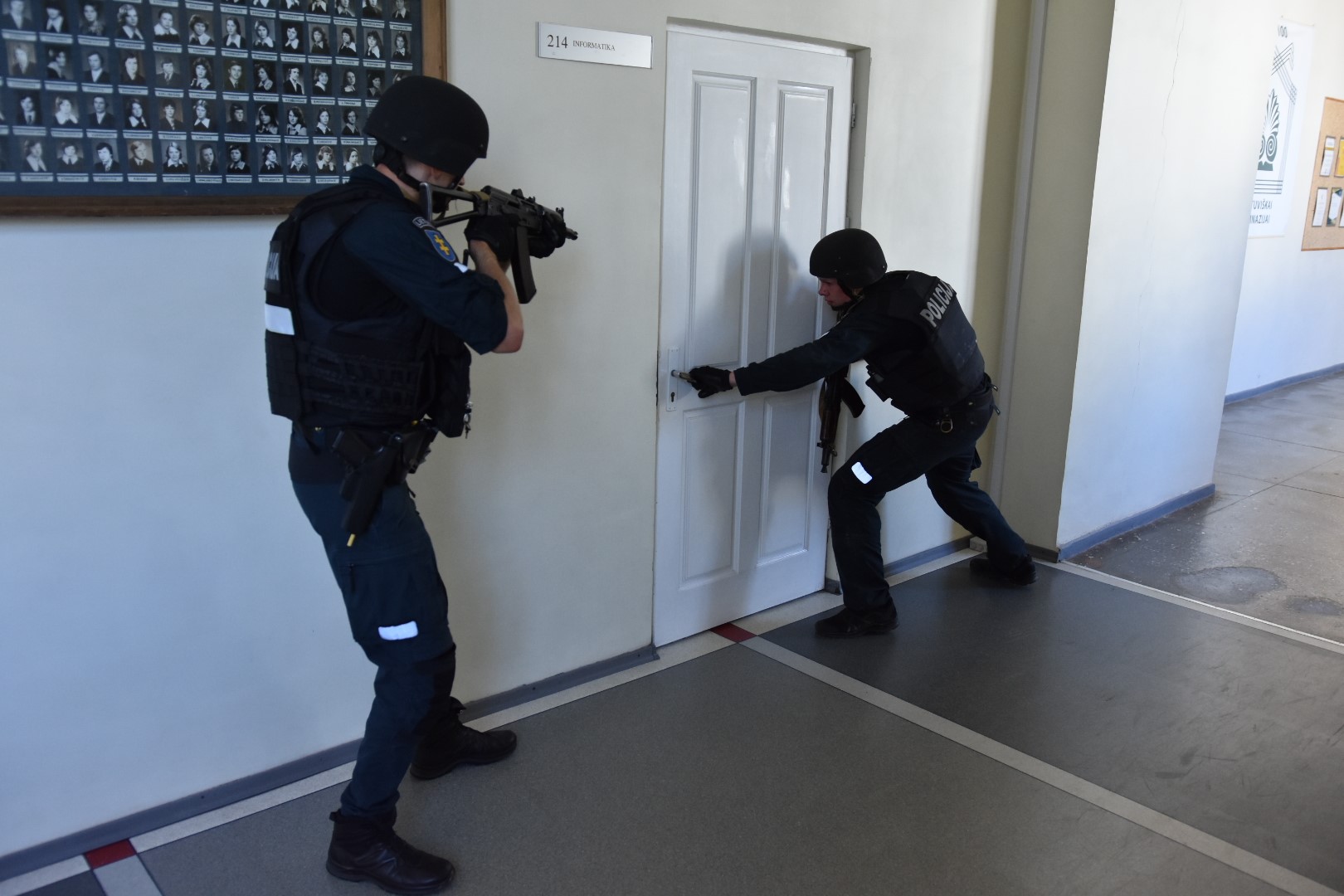 Bataliono štabo S5 skyriaus viršininko Tomo Malinsko teigimu, pagal pratyboms sukurtą scenarijų klasėje vykstant pamokai, į ją įsiveržę asmenys pradėjo šaudyti. Užpuolimo metu sužeista apie 20–30 žmonių.
