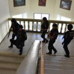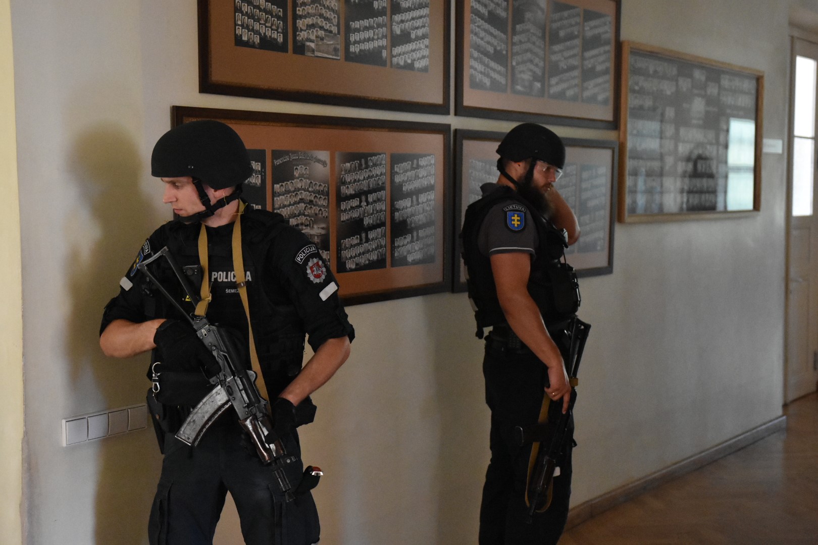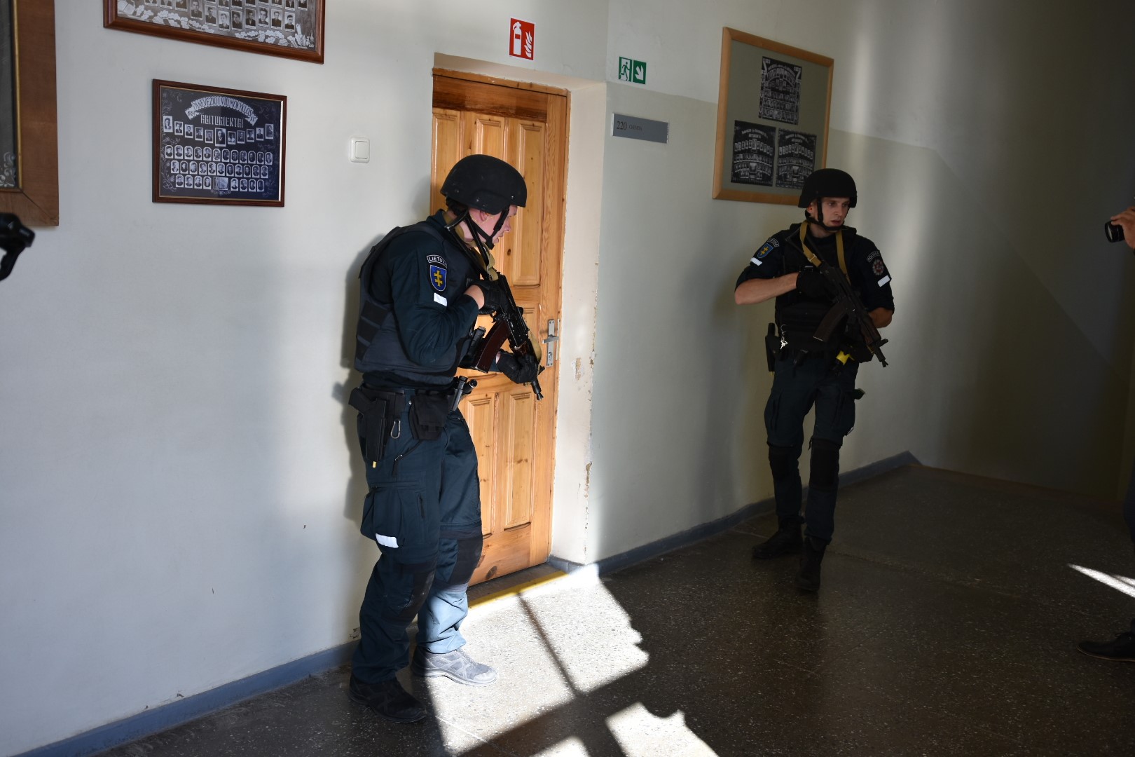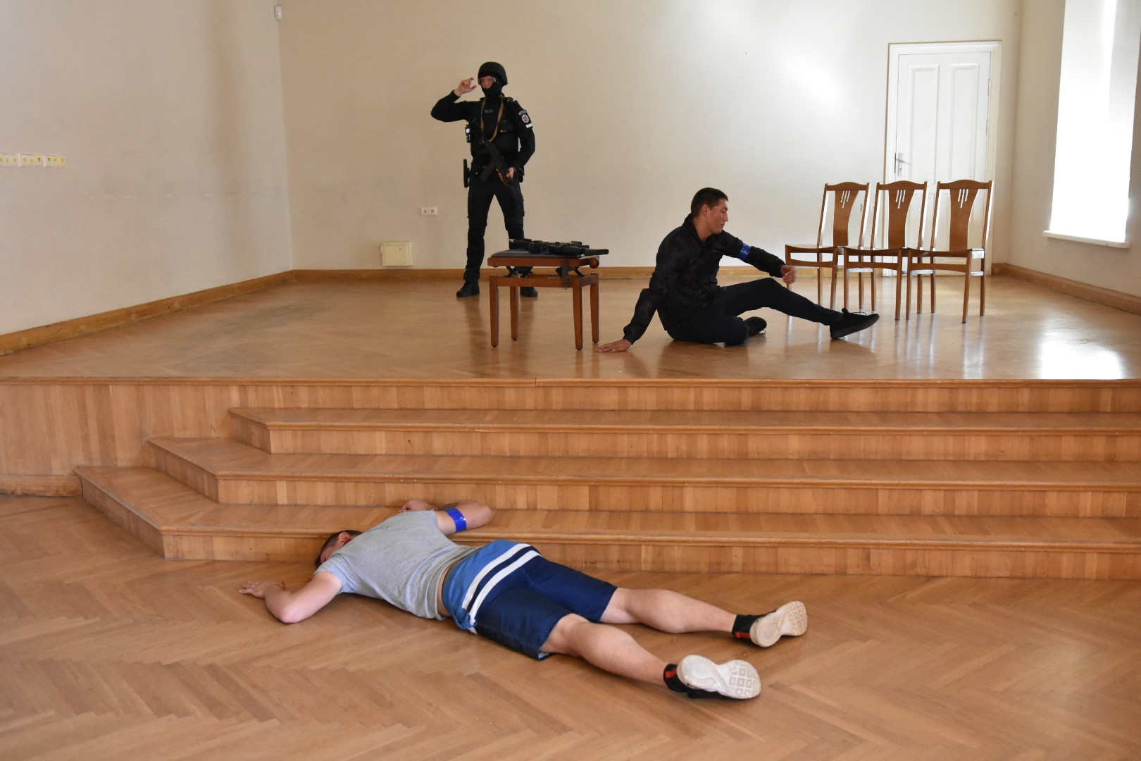 Bataliono štabo S5 skyriaus viršininko Tomo Malinsko teigimu, pagal pratyboms sukurtą scenarijų klasėje vykstant pamokai, į ją įsiveržę asmenys pradėjo šaudyti. Užpuolimo metu sužeista apie 20–30 žmonių.