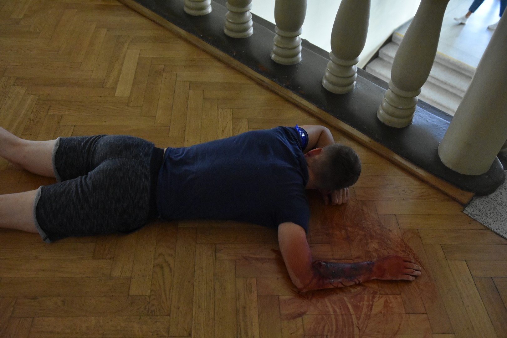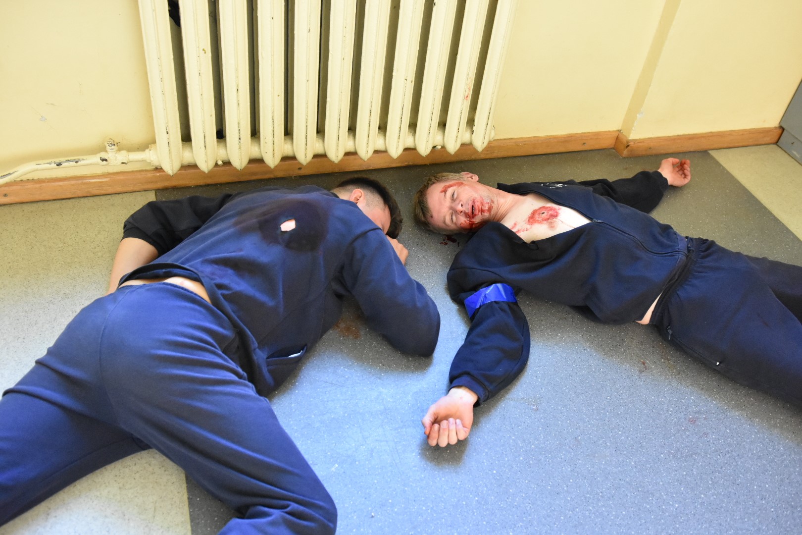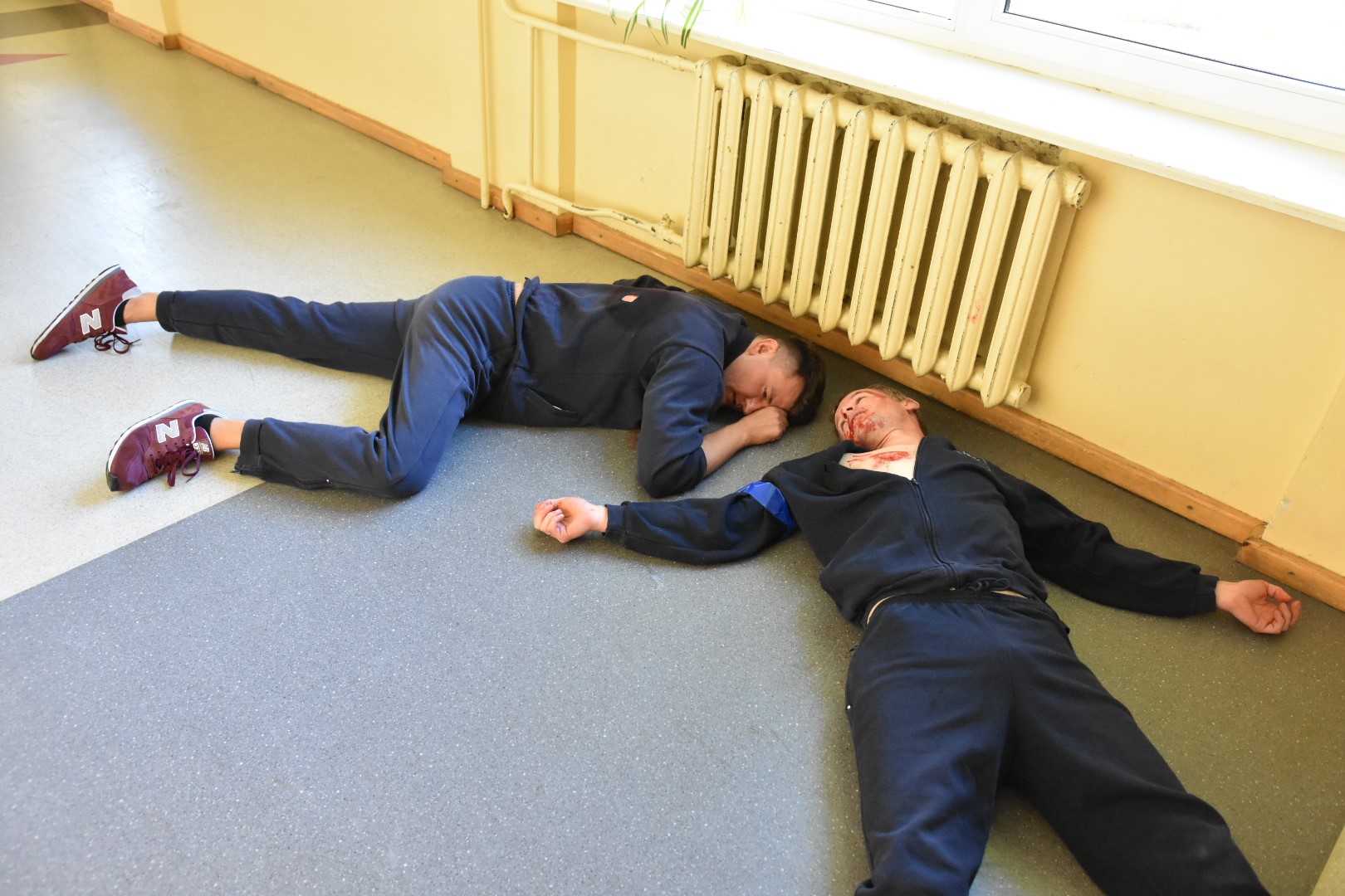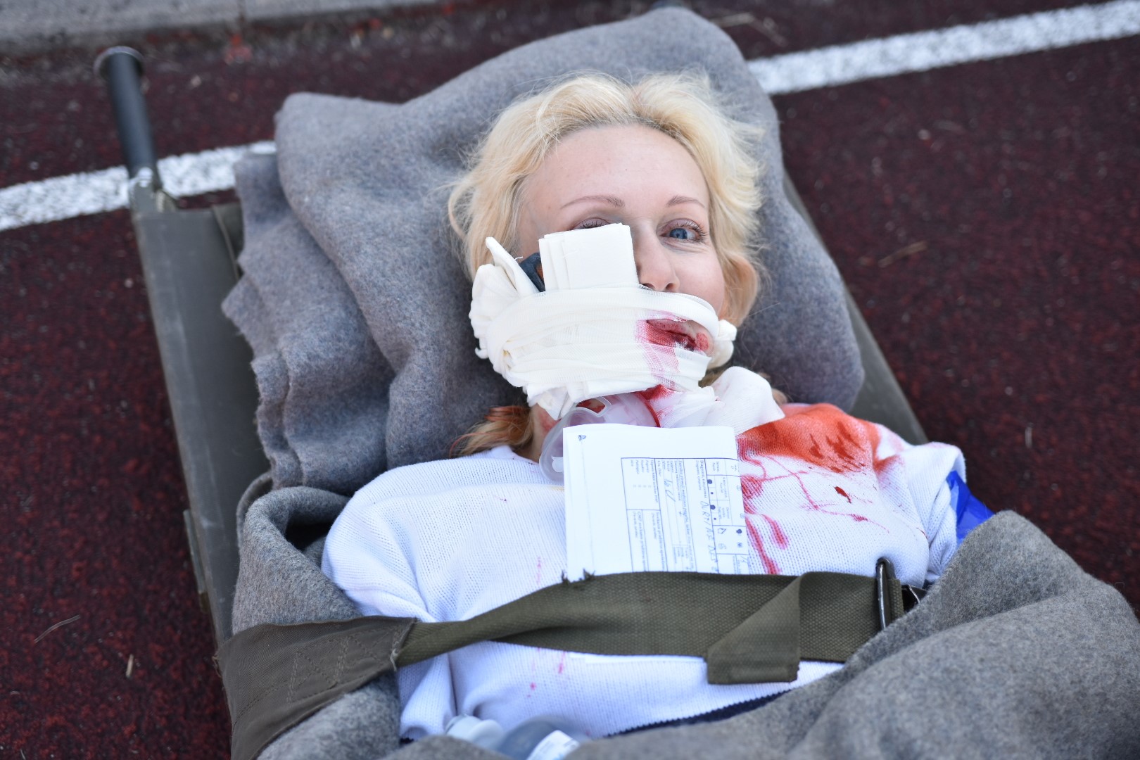 Kad būtų tikroviškiau, sužeistieji buvo specialiai nugrimuoti.