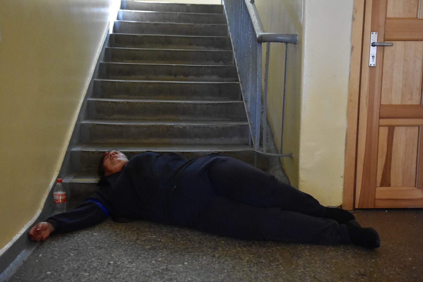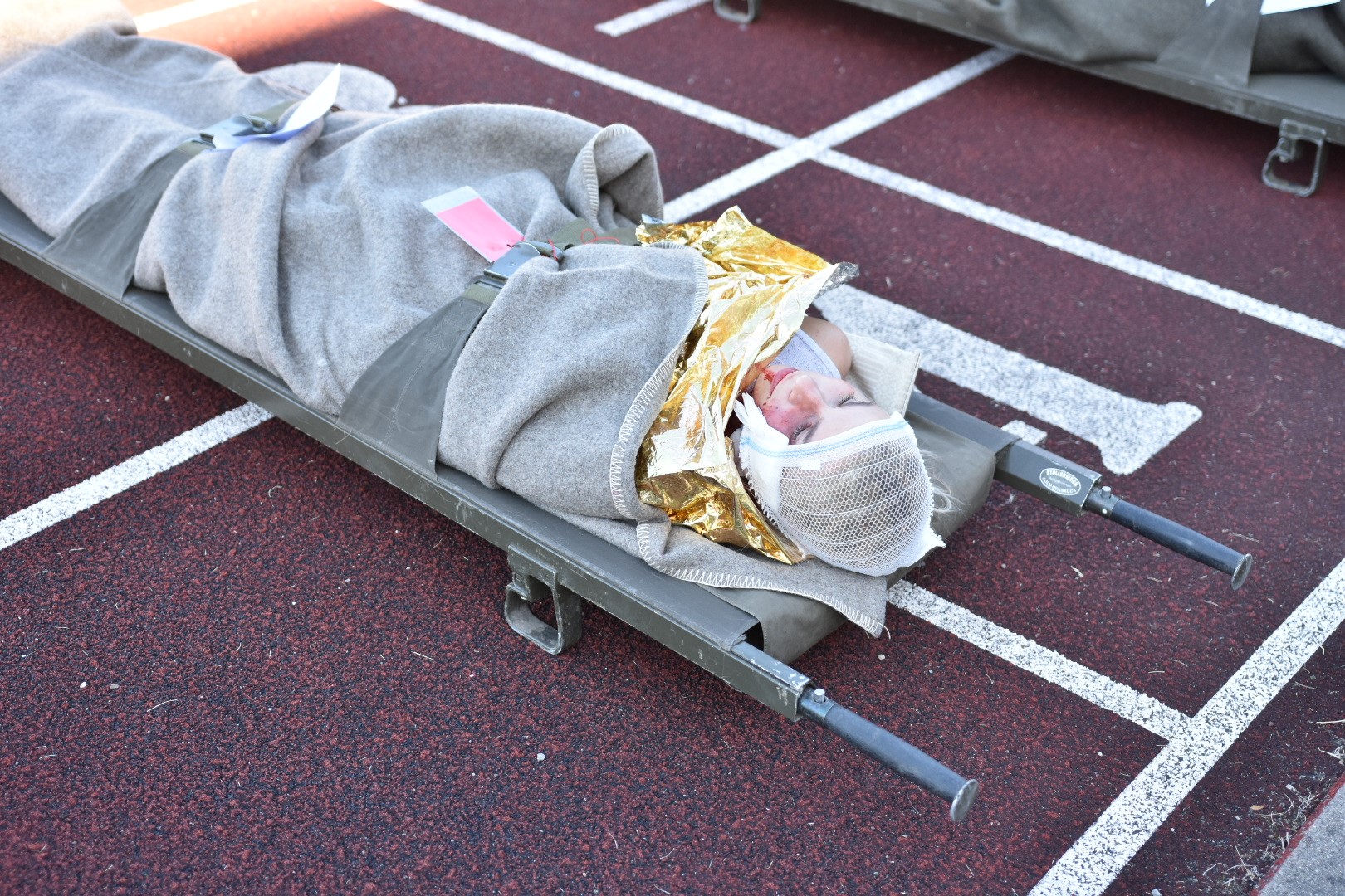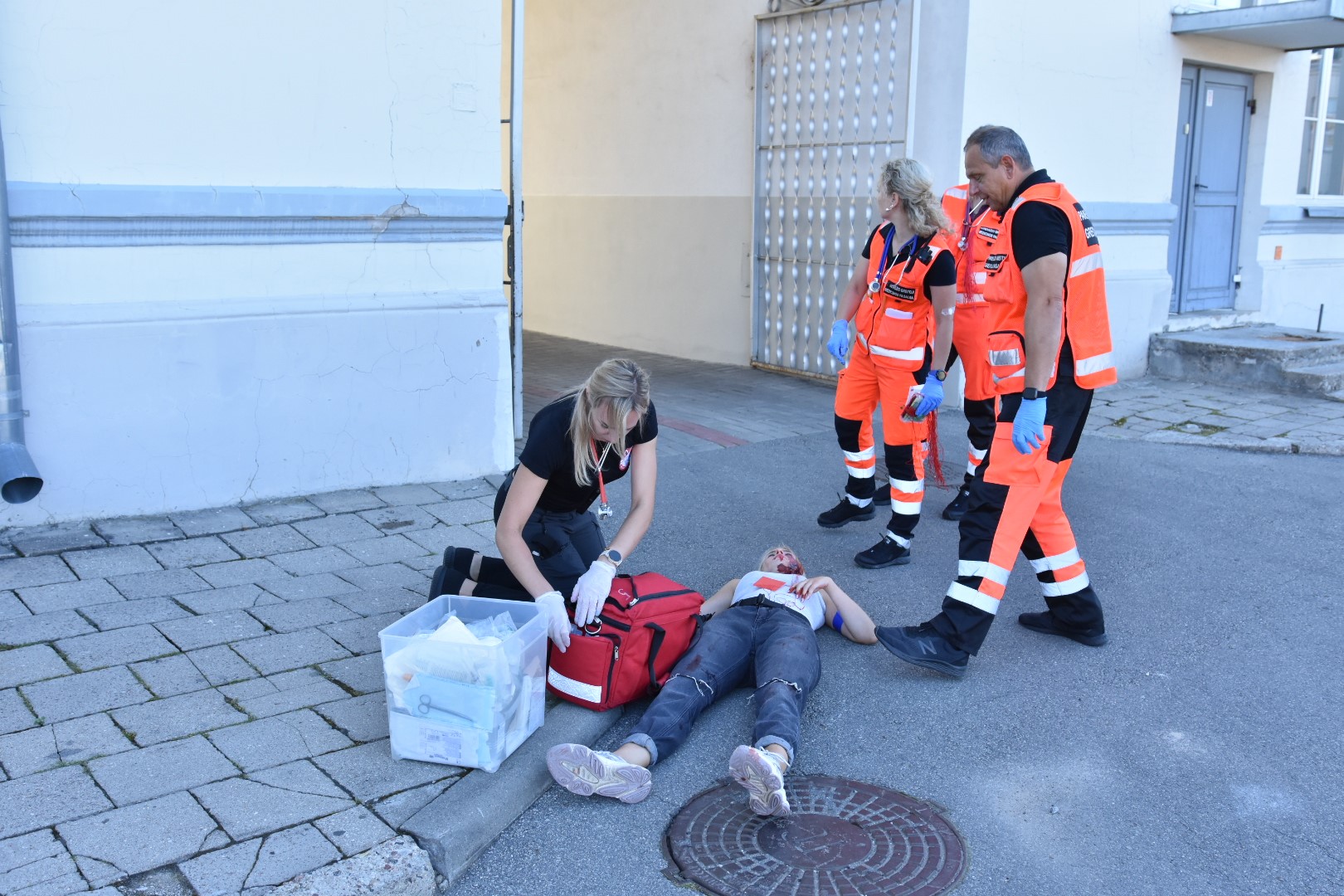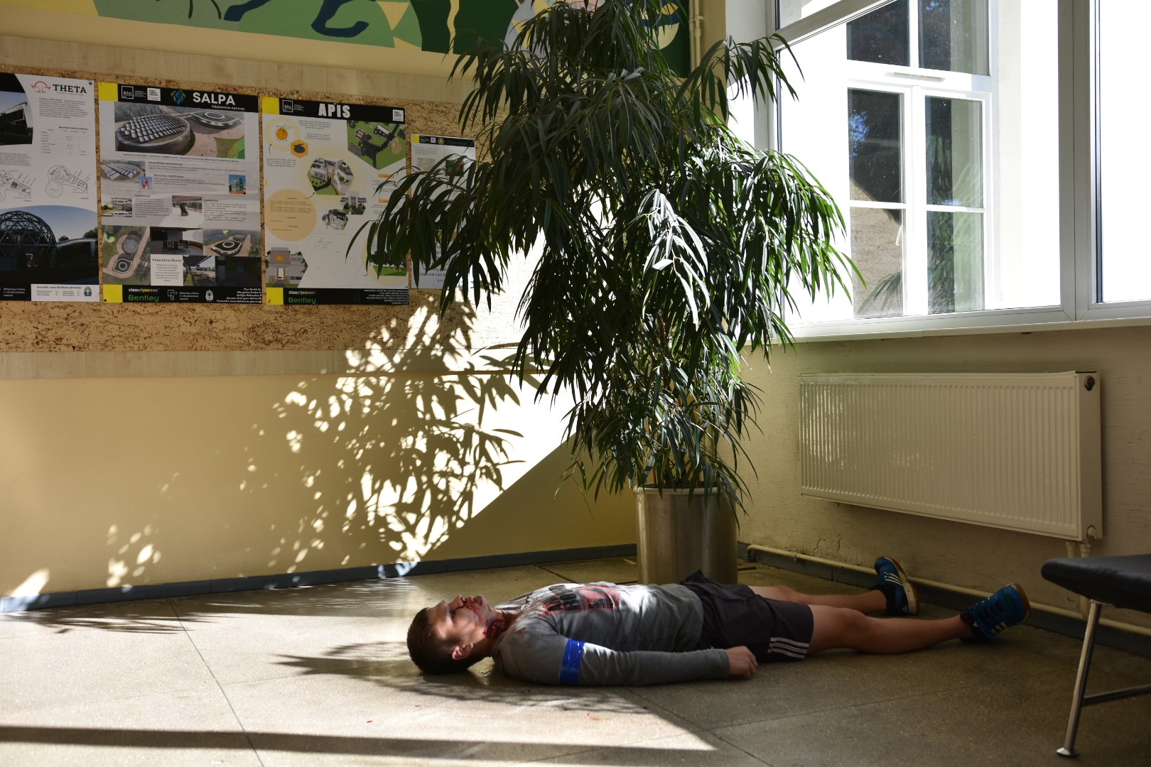 Kad būtų tikroviškiau, sužeistieji buvo specialiai nugrimuoti.