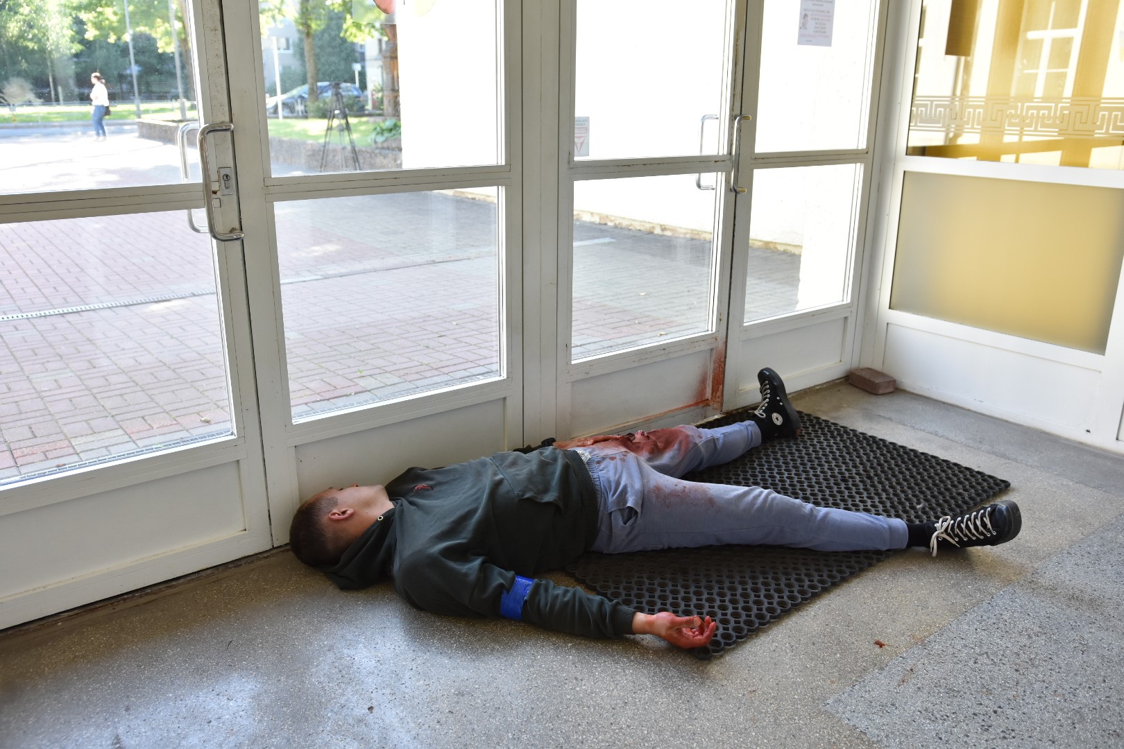 Panevėžio Juozo Balčikonio gimnazijoje trečiadienio rytas prasidėjo neįprastai – tratėjo automatų šūviai, sklido sužeistųjų dejonės.