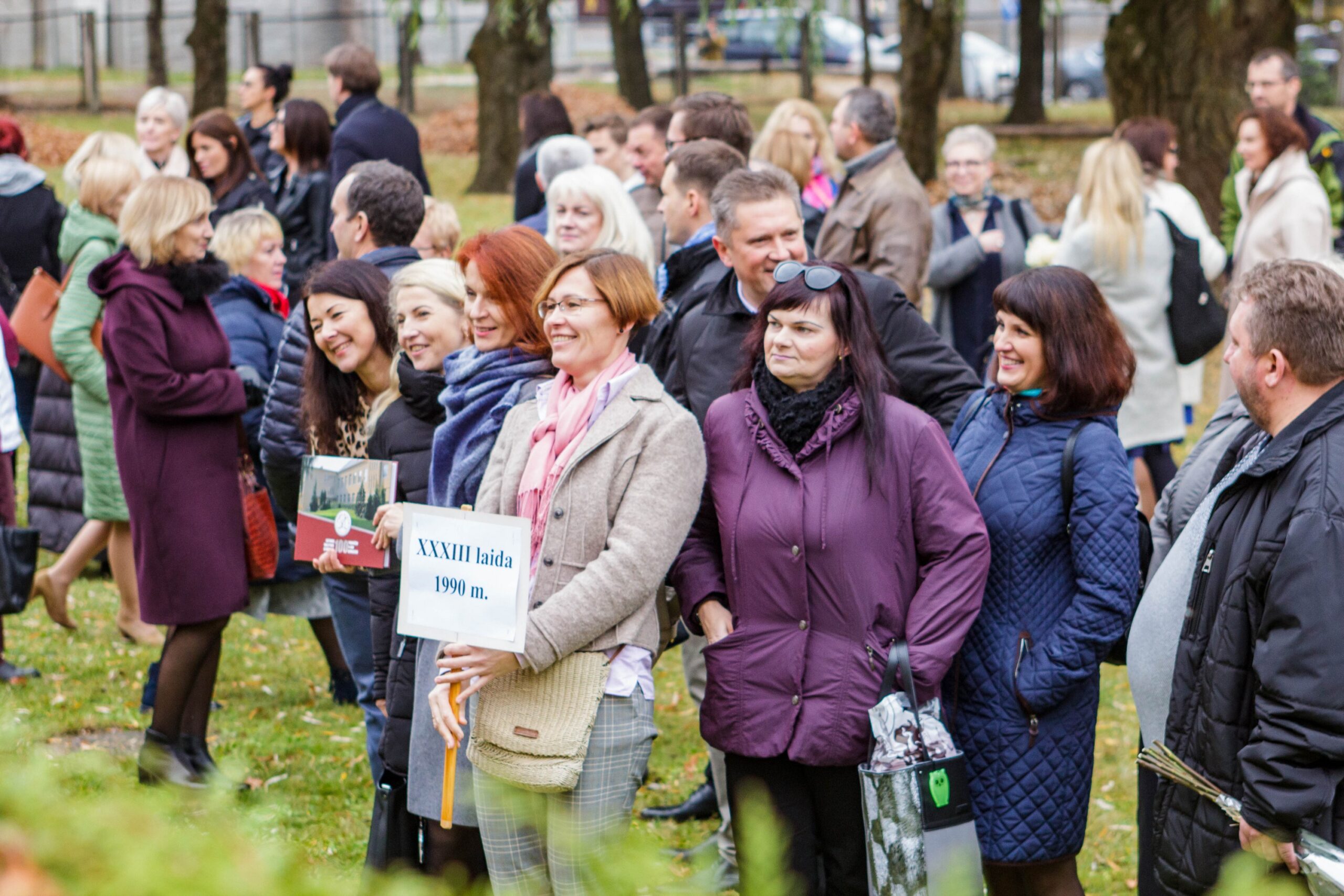 Mokykla didžiuojasi visais savo auklėtiniais, tačiau ją baigė ir daug žymių žmonių. Tai aktoriai Eleonora Koriznaitė, Albinas Kėleris, Julius Tamošiūnas, dailininkas, scenografas Vygantas Kosmauskas, žinomi medikai chirurgas Žilvinas Saladžinskas, chirurgas Žilvinas Dambrauskas, fizikas, dr. Osvaldas Putkis, verslininkai, mokslininkai broliai Vizbarai, Europos Komisijos atstovybės Lietuvoje vadovas Arnoldas Pranckevičius, diplomatas, Lietuvos ambasadorius Norvegijoje Jonas Paslauskas, Lietuvos ambasados JAV ministras patarėjas Mindaugas Žičkus, Lietuvos nuolatinės atstovybės ES antrasis sekretorius Giedrius Lingė, žurnalistai Rasa Tapinienė, Artūras Račas, Lina Neverbickienė ir daugelis kitų politikų, žurnalistų, rašytojų, kitų profesijų žmonių. Nemaža jų dalis atvyko į šventę.