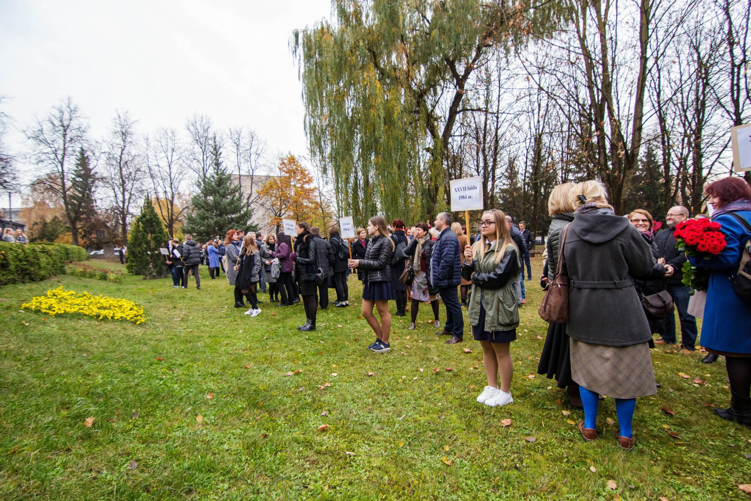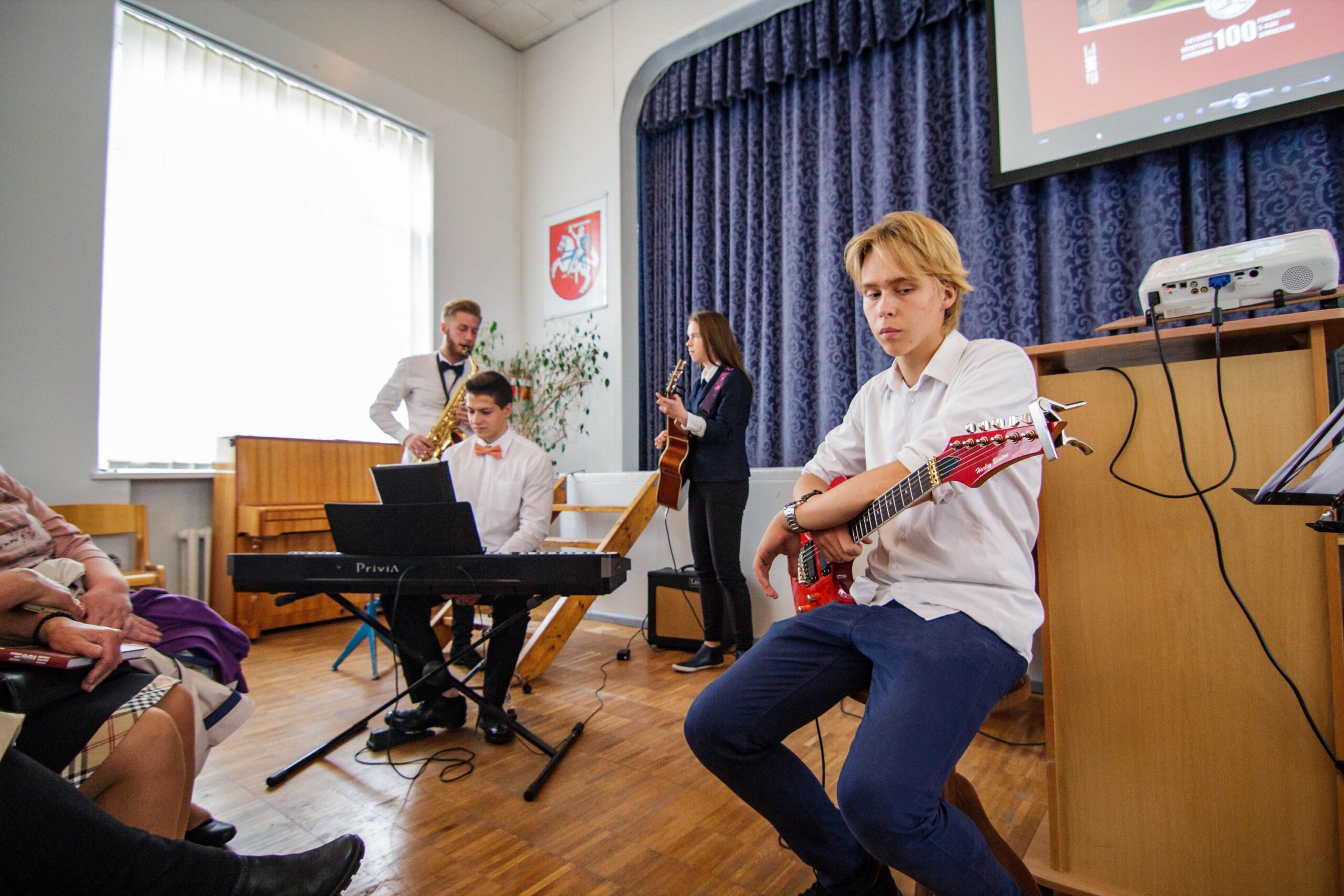 Direktorė dėkojo savo mokytojams, iš kurių išmoko stiprybės, išminties, atkaklumo. Visus sveikindama su jubiliejumi linkėjo veržlumo, bendruomeniškumo ateinančiam šimtmečiui, žinių troškimo.