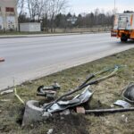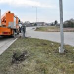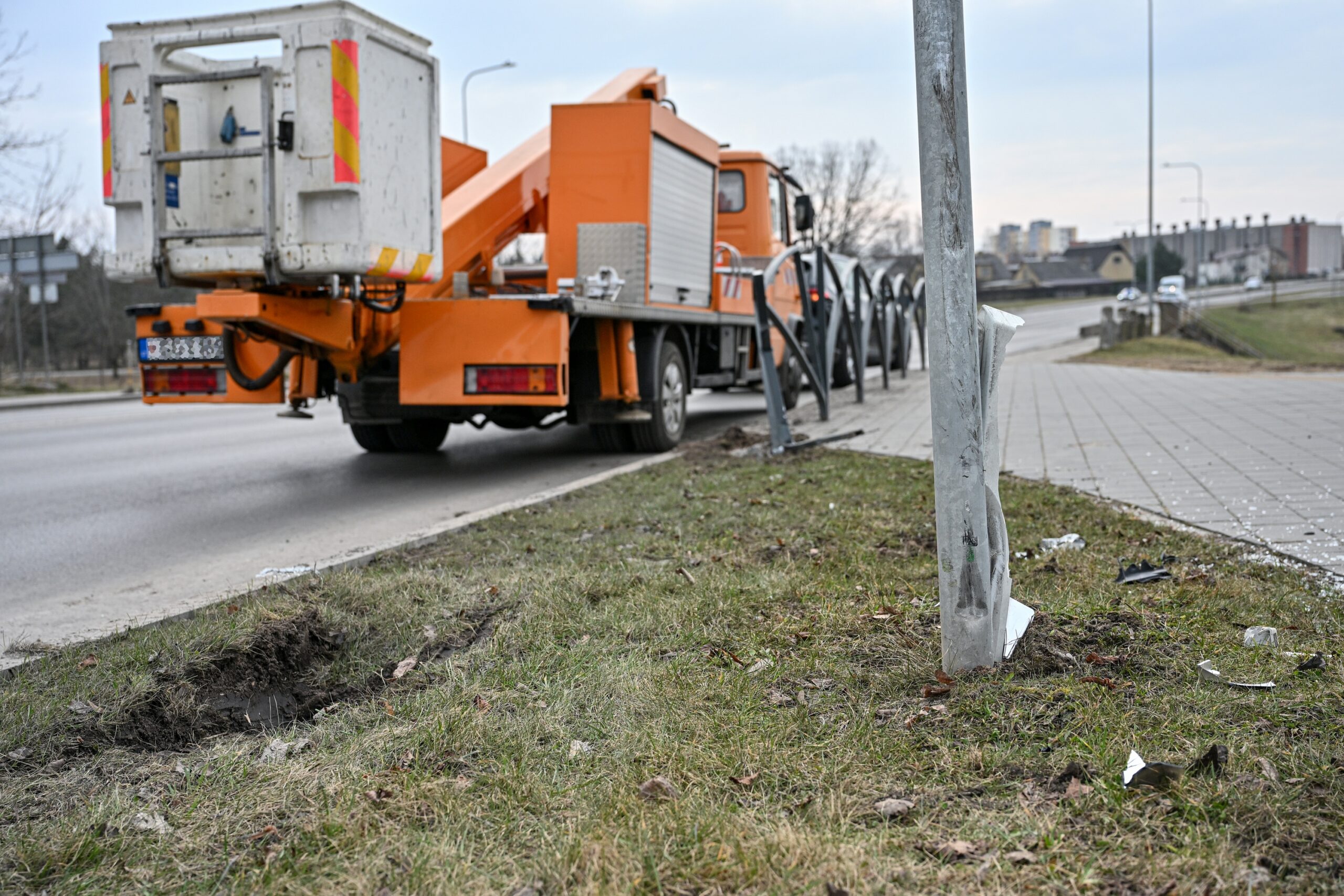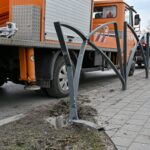 Po to vilkikas atsitrenkė į netoli stovintį kelio ženklą, žymintį Vakarinės gatvės pėsčiųjų ir dviratininkų taką, sulankstė metalinę apsauginę tvorelę prie pat gatvės.