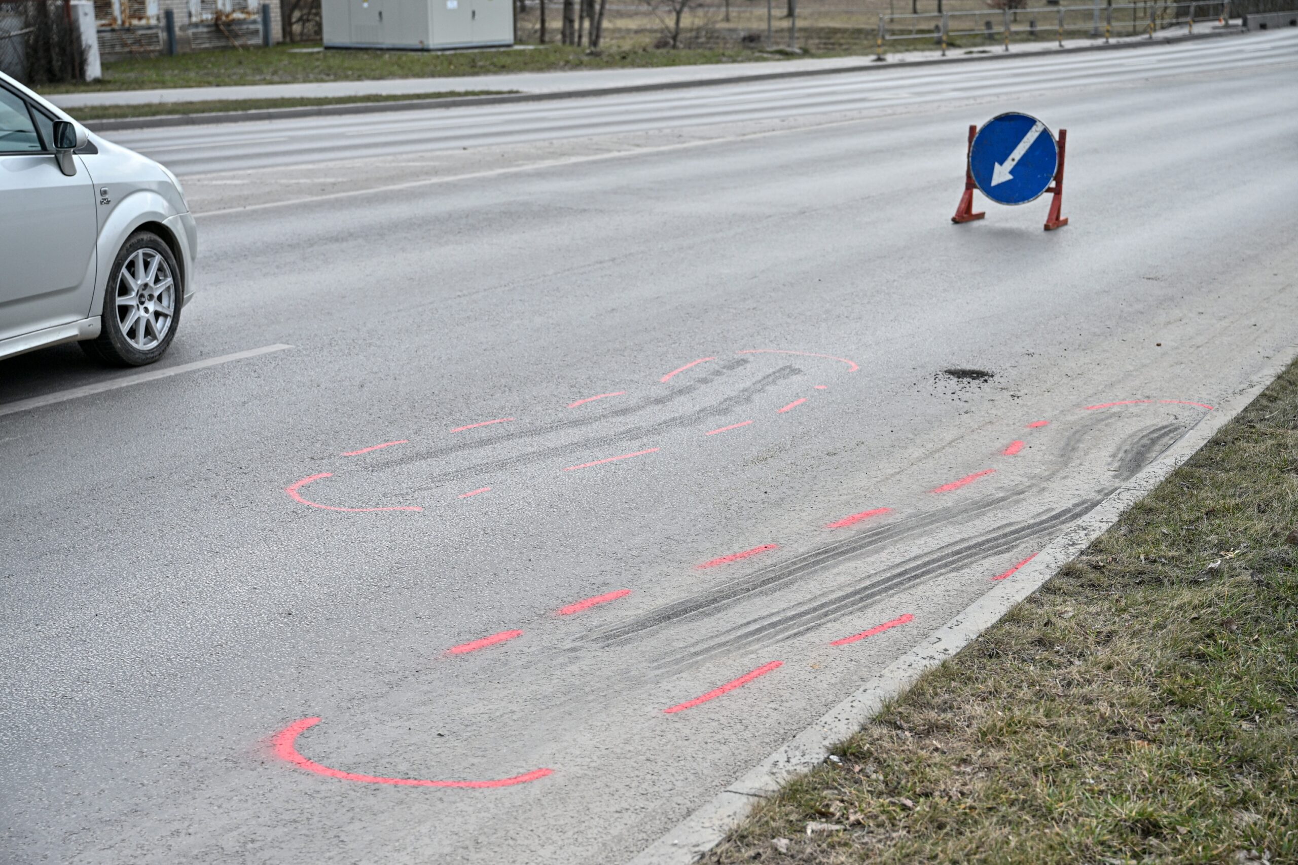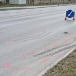Ant Vakarinės gatvės asfalto liko ir automobilio stabdymo žymės. Ryte šią vietą tvarkė įmonės „Panevėžio gatvės“ brigada.