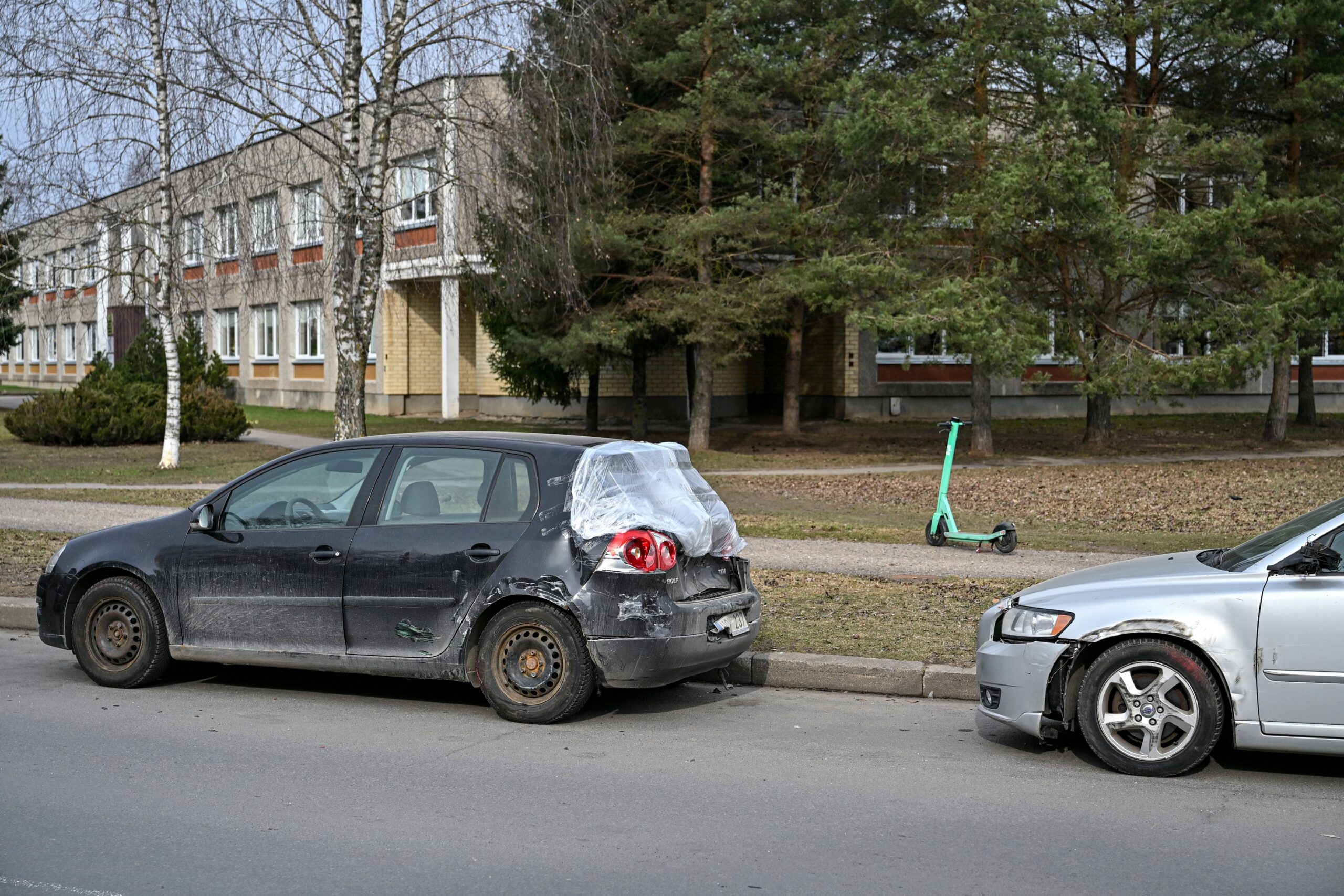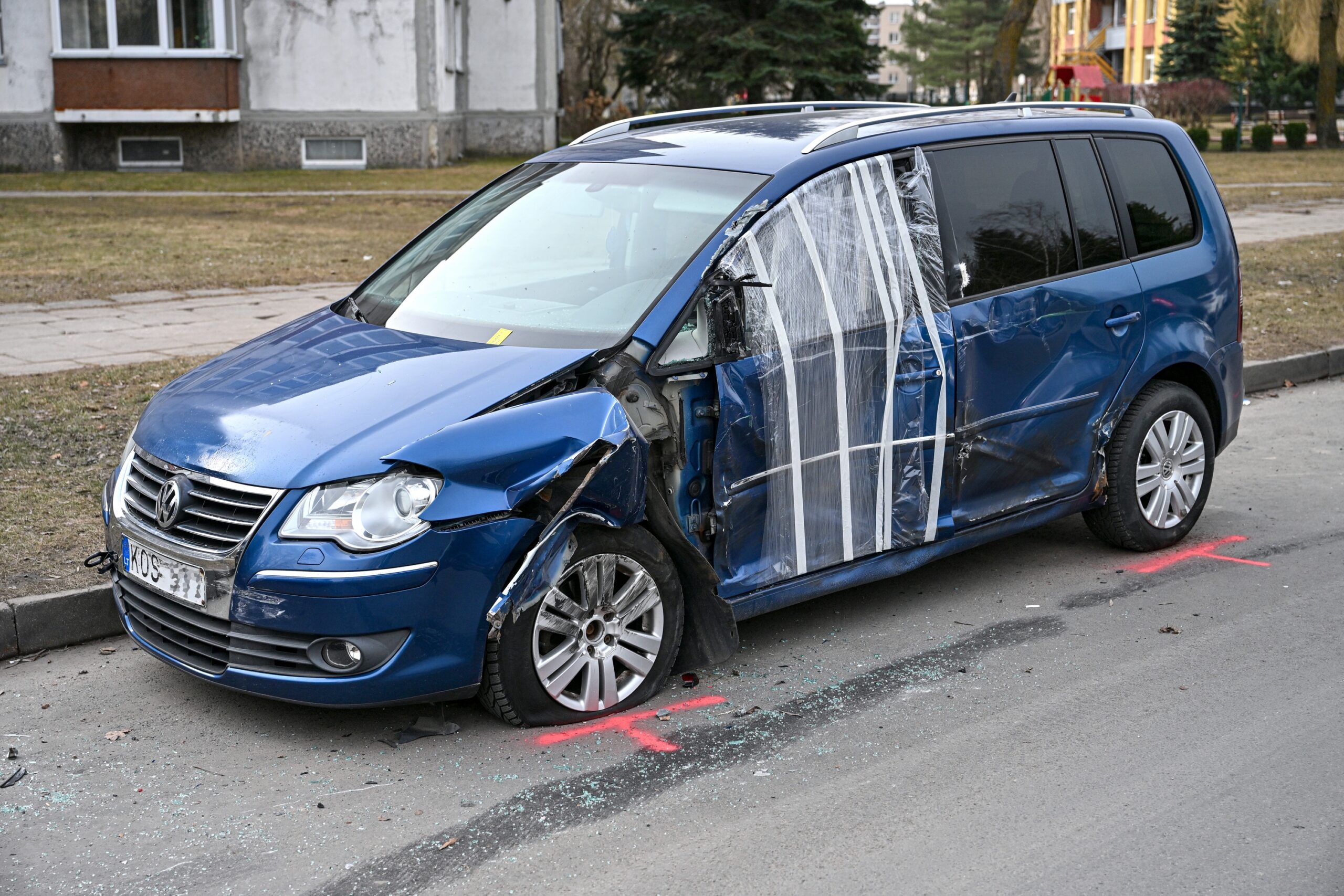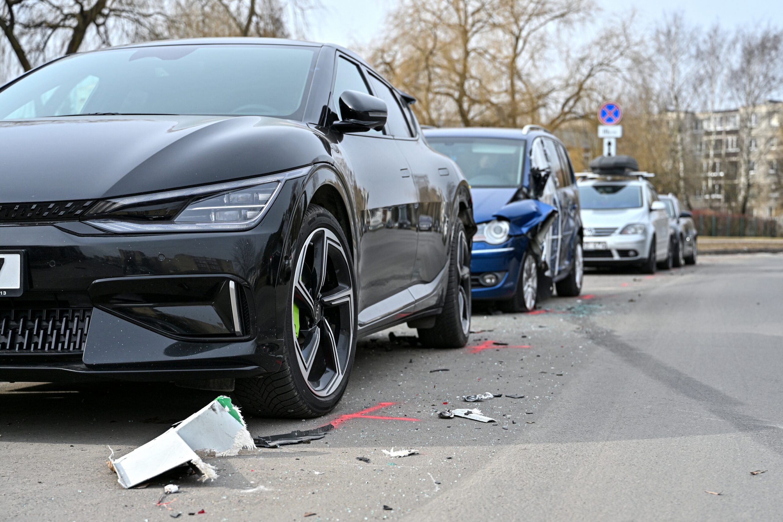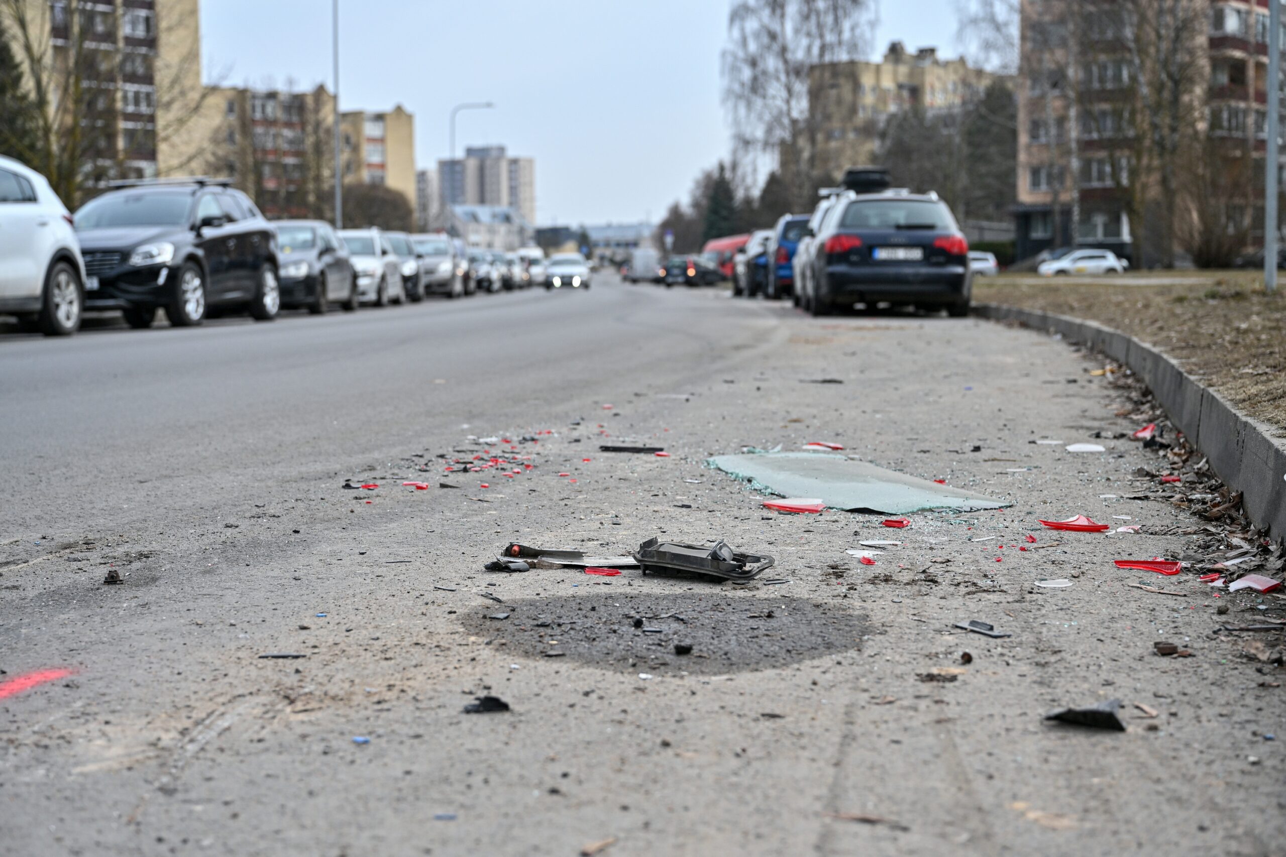 Kniaudiškių gatvė nubarstyta mašinų lūženomis.