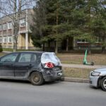 Ne vienos mašinos išbyžėję langai, numušti veidrodėliai, sulankstytos skardos.