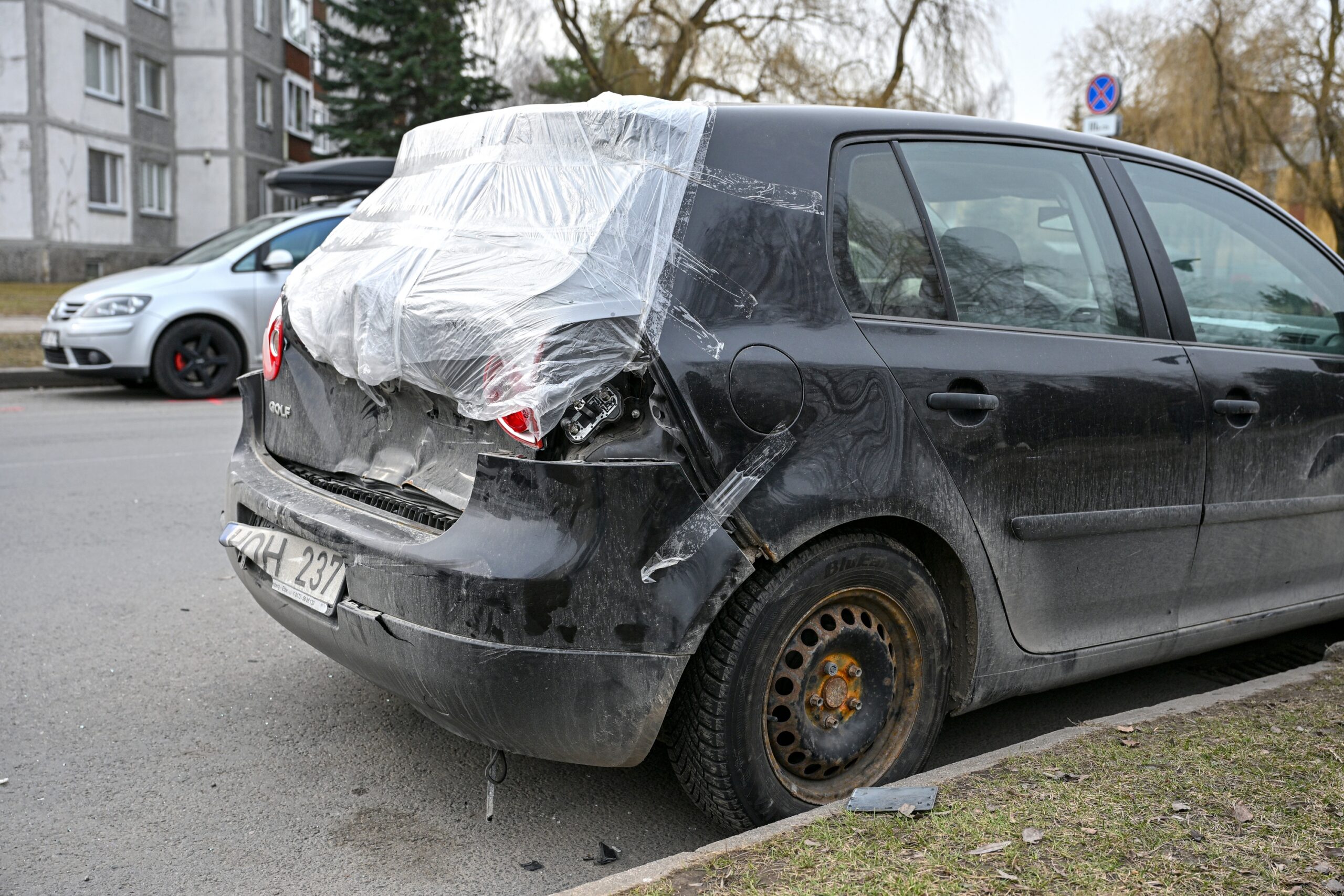 Jis apgailestavo negalintis pajudėti iš vietos, nes gale stovėjęs automobilis tiesiog pasimovęs ant jo mašinos kablio.