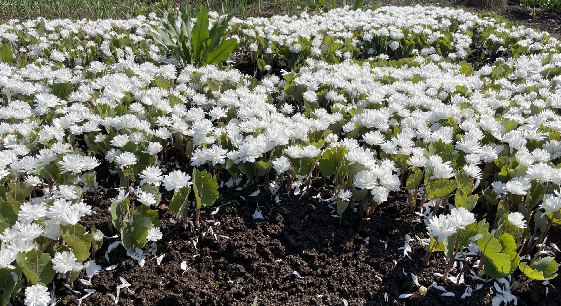 Tada retus augalus gavo iš Kauno botanikos sodo. Gėlininko manymu, sangvinarijos – pačios gražiausios pavasario gėlės, bet dar labai retos lietuvių darželiuose. Kai pražysta, tiesiog traukia akį savo baltumu.
