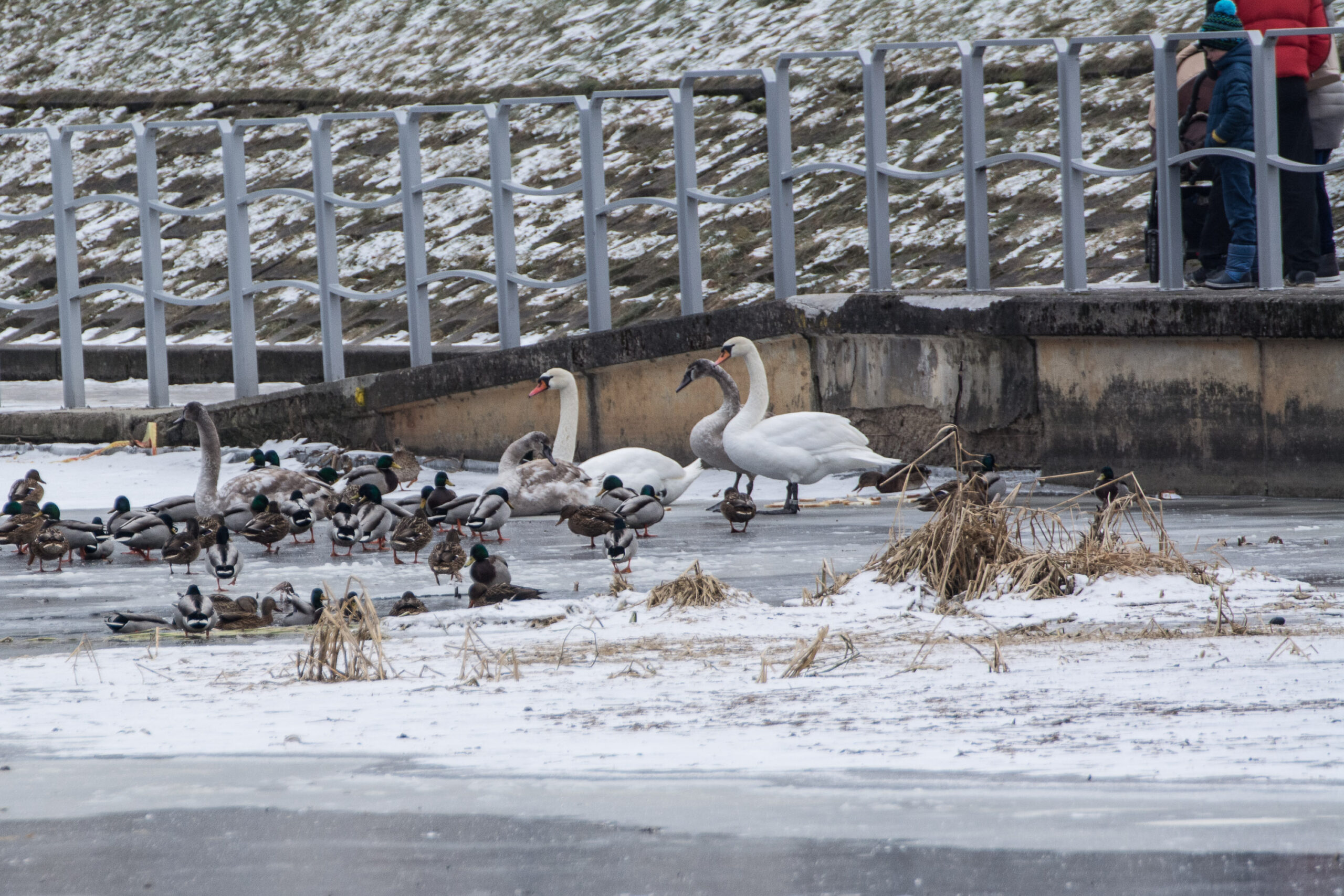 „Žiemą ant ledo tupintis paukštis taupo energiją: nejuda, suriečia galvą, todėl gali atrodyti lyg įšalęs. Tačiau jeigu temperatūra aukštesnė nei 18 laipsnių šalčio, nerimauti nevertėtų. Norėdami patikrinti, ar viskas gerai, galite paimti naujametinių petardų ir jomis pašaudyti netoli paukščio bei taip jį išgąsdinti. Jeigu matysite, kad net tuomet sparnuotis nepajudėjo, galėsite daryti išvadą, kad pagalba išties reikalinga“, – pataria specialistas.