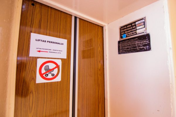 „Jeigu vaikiškas vežimas telpa į liftą, niekas nedraudžia juo naudotis, bet jeigu netelpa, pagelbėti jau niekuo negalime. Taip, ant vieno lifto yra ženklas, draudžiantis juo važiuoti su vežimais, bet tik todėl, kad šis liftas skirtas išimtinai personalui“, – aiškino R. Vedlugienė.