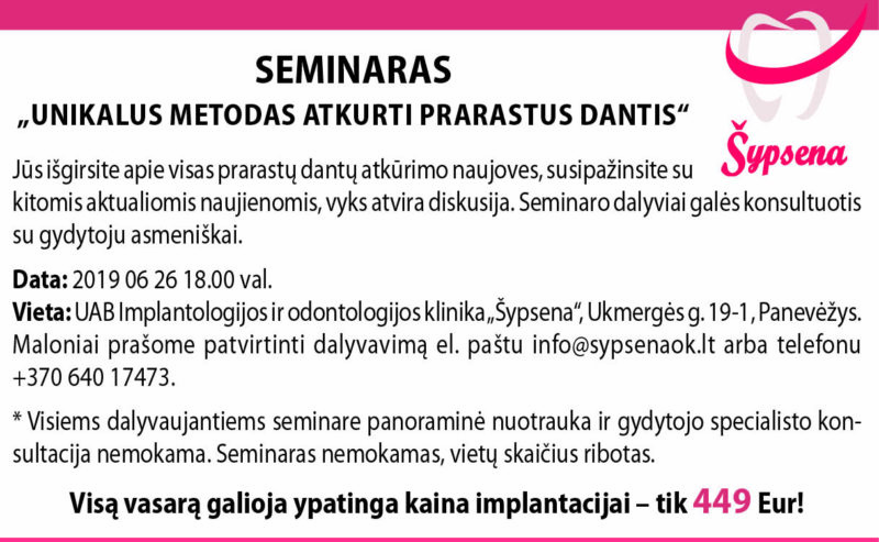 Renginys vyks 2019 06 26 18.00 val. klinikoje „Šypsena“, Ukmergės g. 19-1, Panevėžyje.
